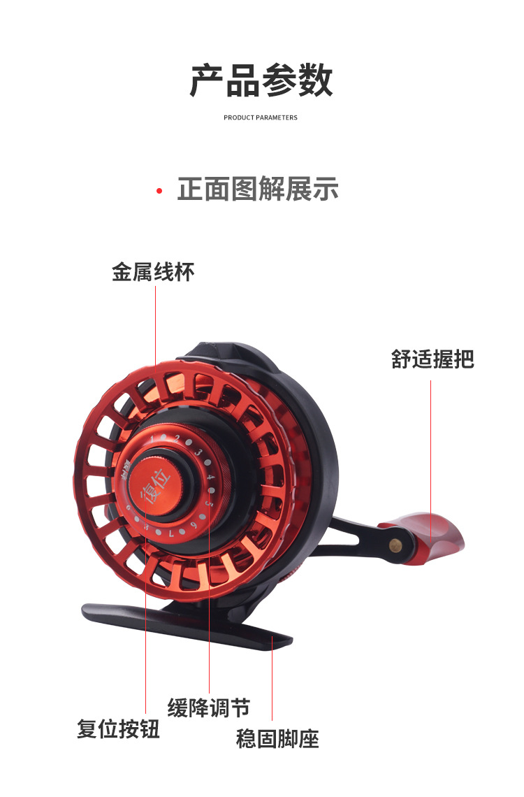 Ice bel氷釣り輪50型小型いかだ釣り冬の氷の上の魚の竿の全金属の磁力はゆっくりと下がる前に微鉛を打ちます。