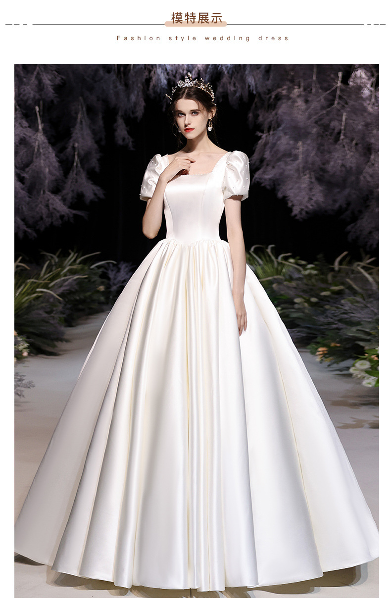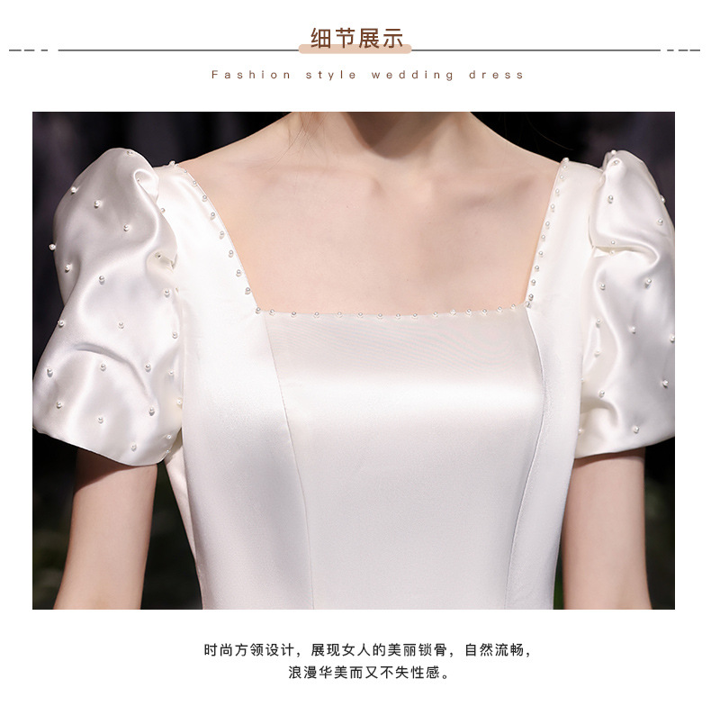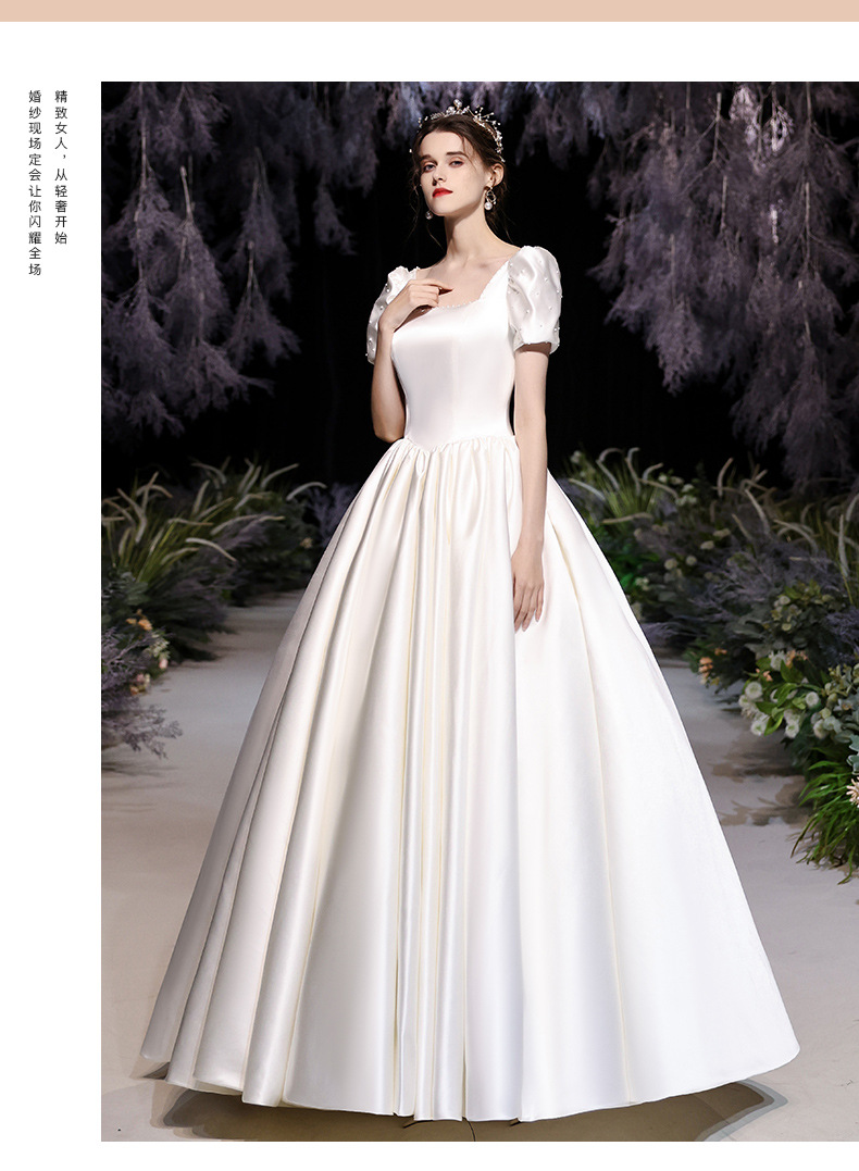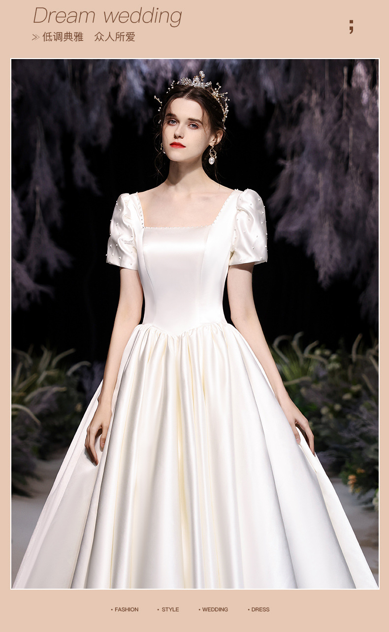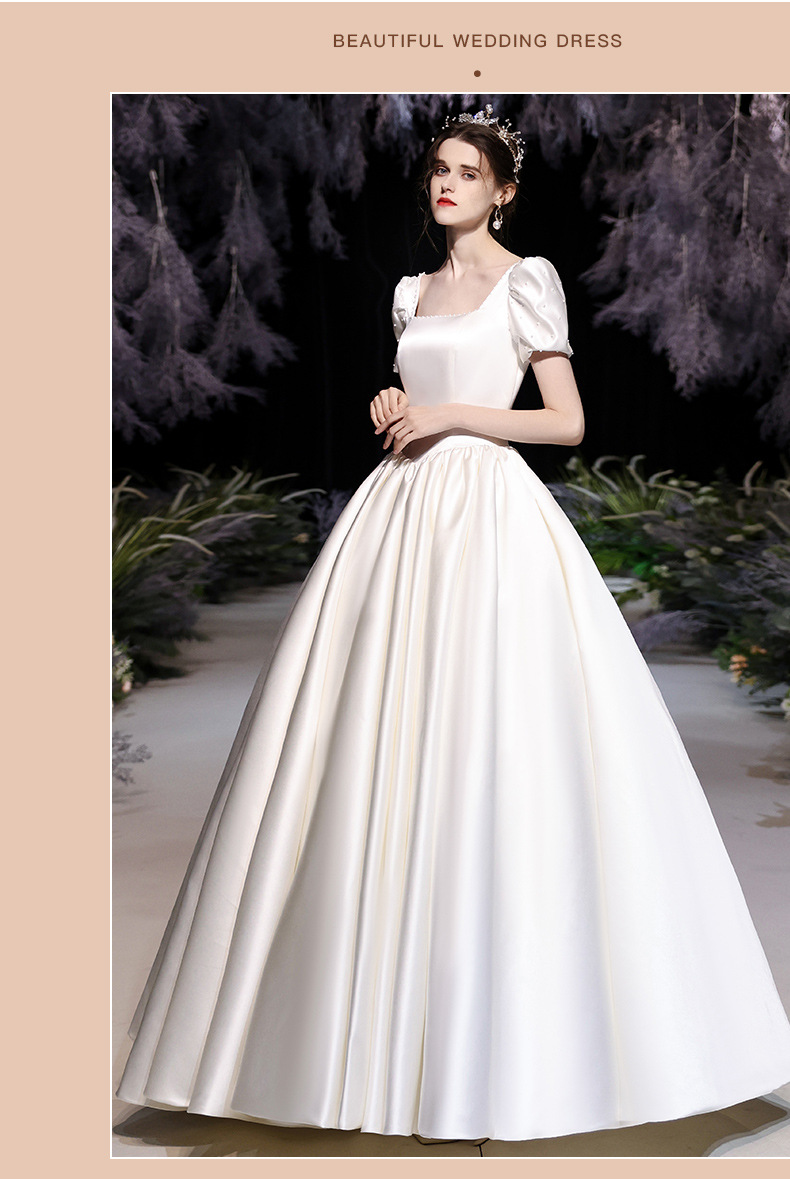 軽いウェディングドレス2021夏の新しい花嫁気質レトロな白い主糸サテンのフランスのシンプルなヘボンの軽いウェディングドレス