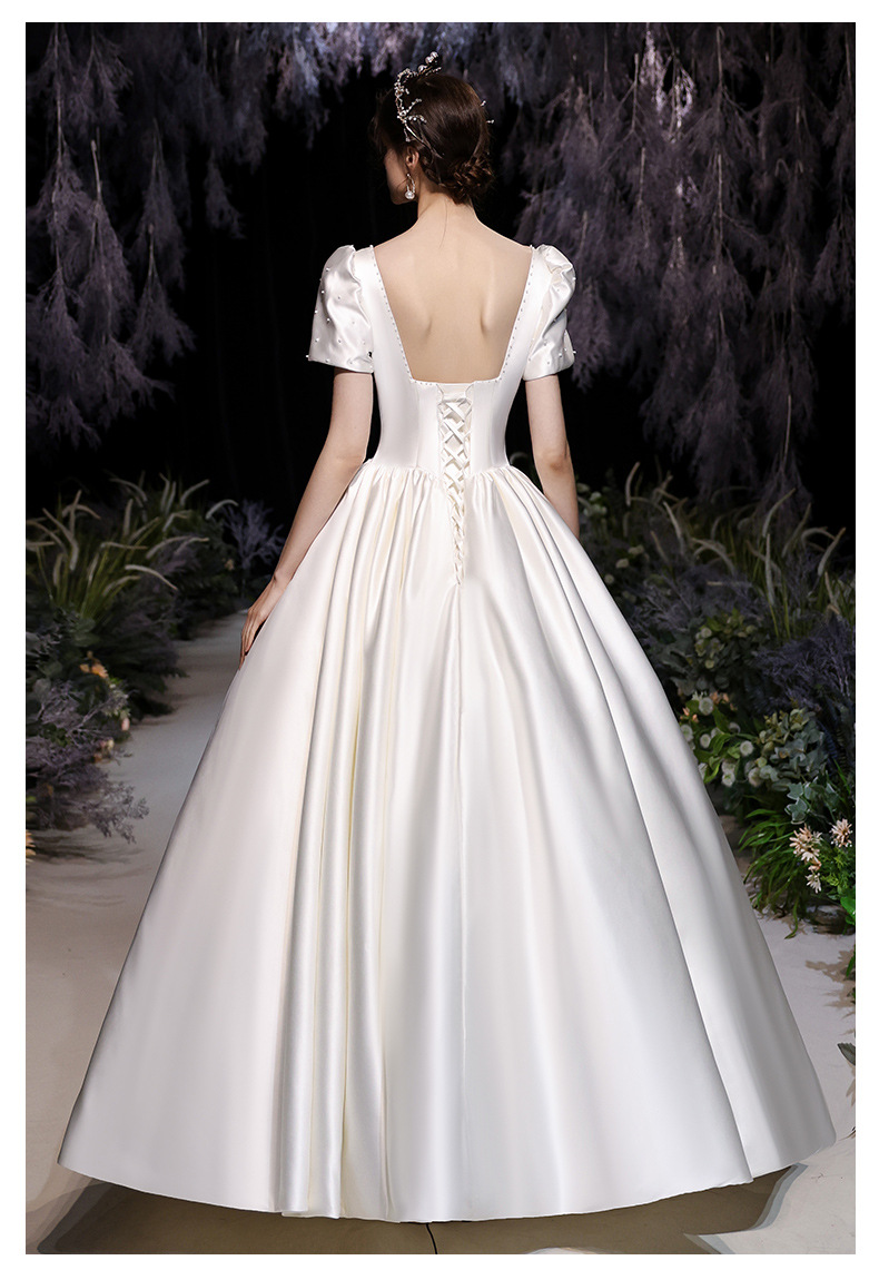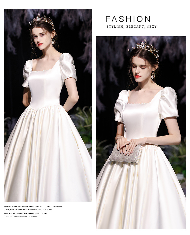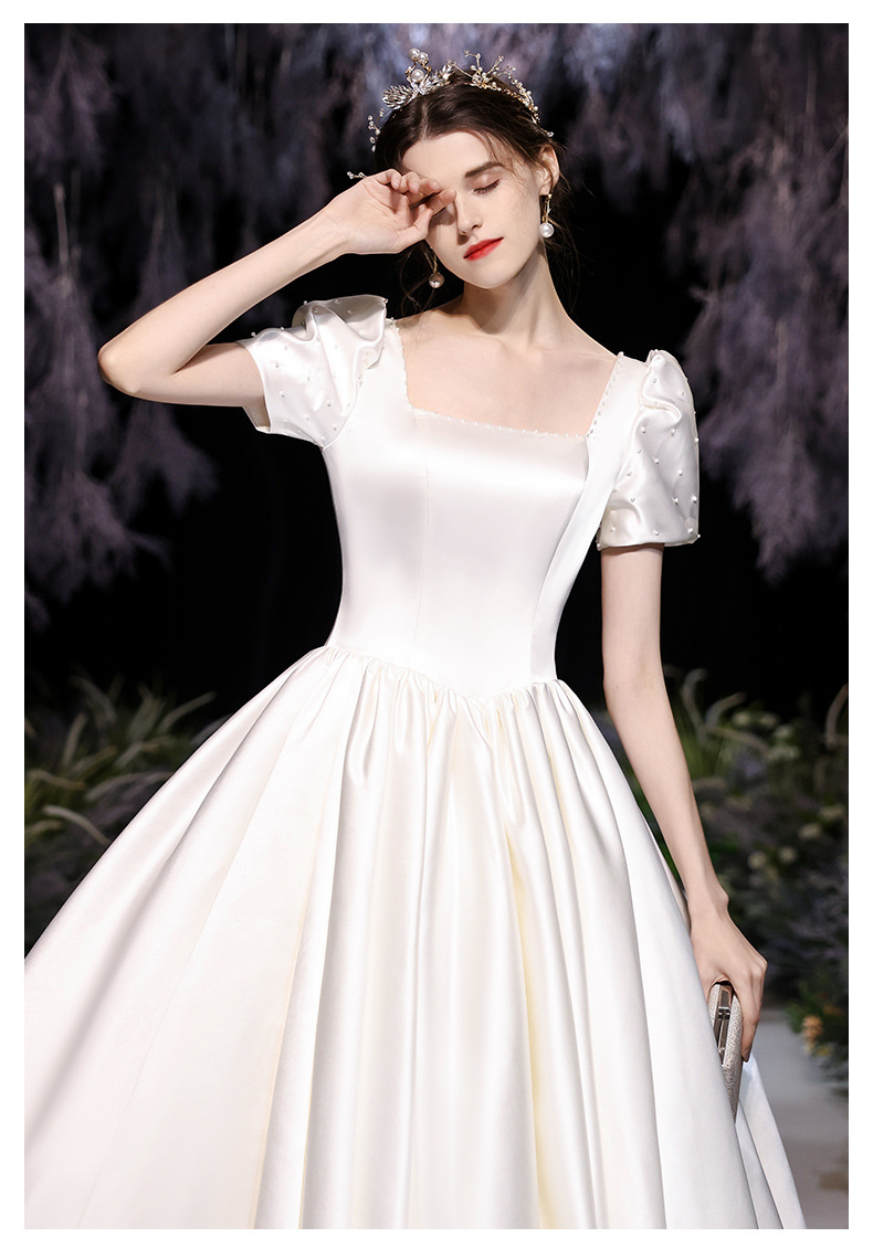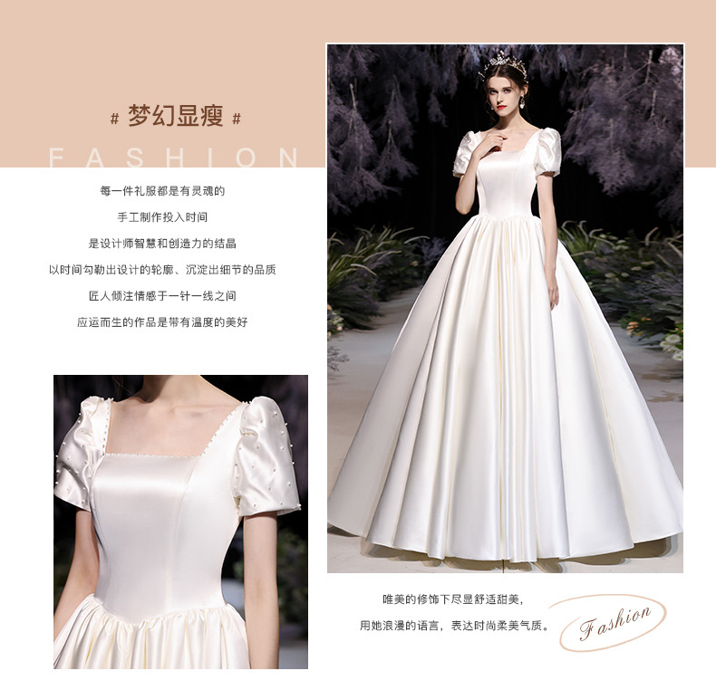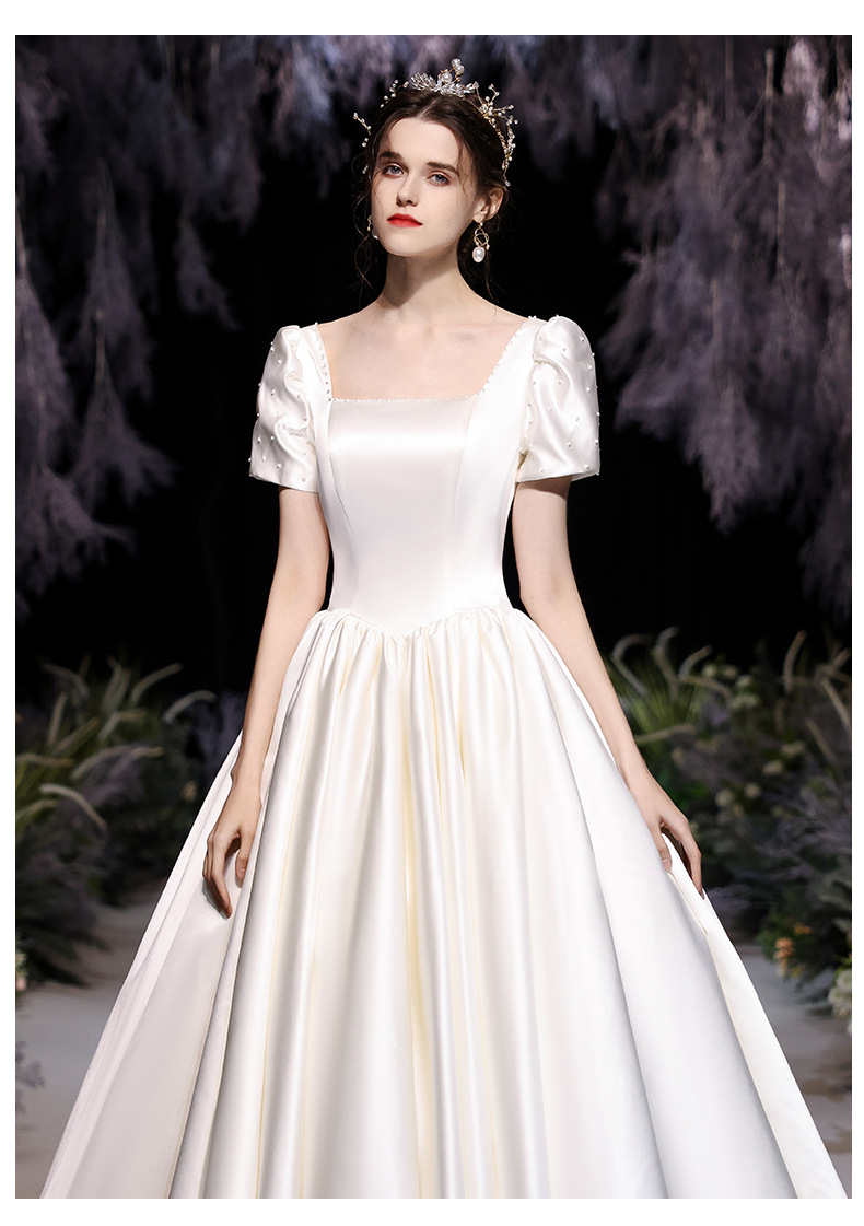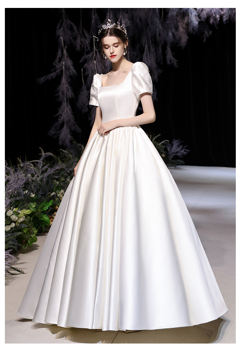 軽いウェディングドレス2021夏の新しい花嫁気質レトロな白い主糸サテンのフランスのシンプルなヘボンの軽いウェディングドレス