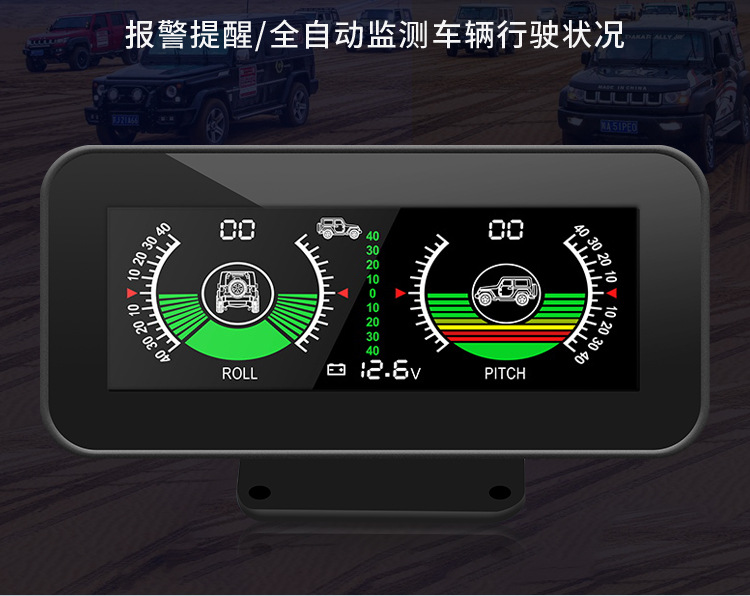 車載用汎用高精度傾斜計、水平計、オフロードHUDヘッドアップディスプレイ、電圧計