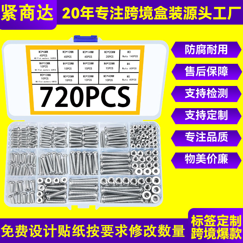 家用螺丝钉螺丝盒套装螺母螺帽螺钉垫片自攻螺丝套装M2M3M4M5M6