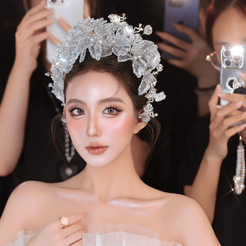新商品の高級クラウンのゲルの花の洋風の王冠の軽豪華な百合の王女の白糸の形の結婚式の新婦の頭飾り