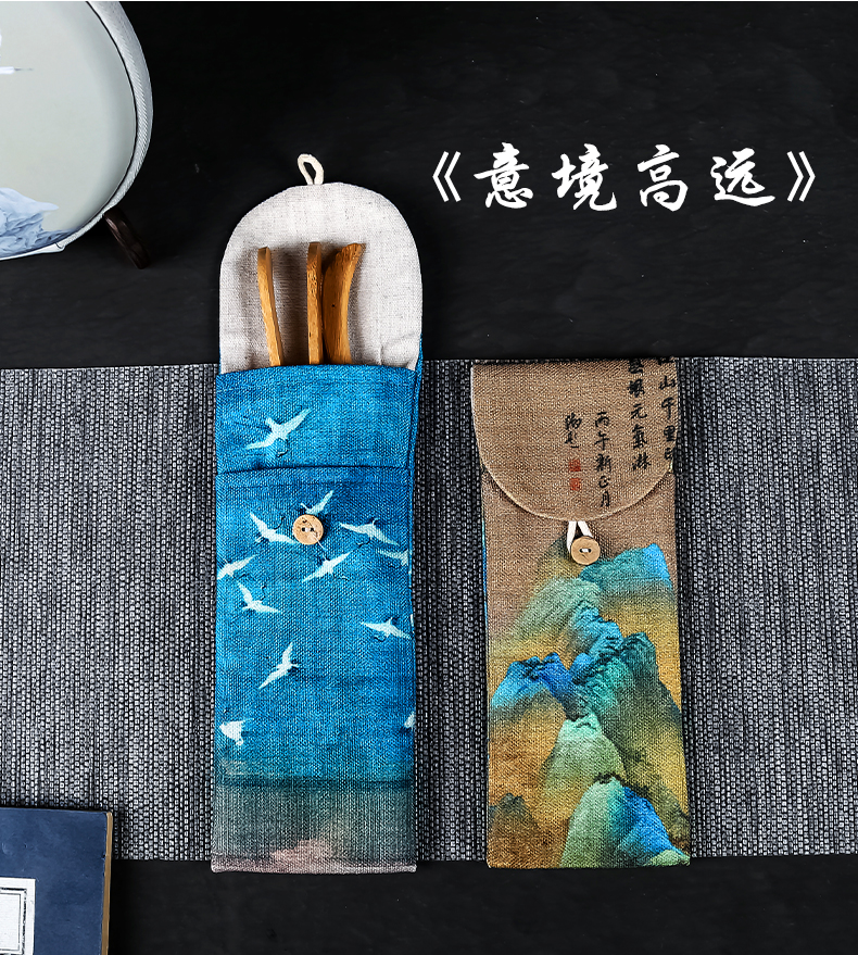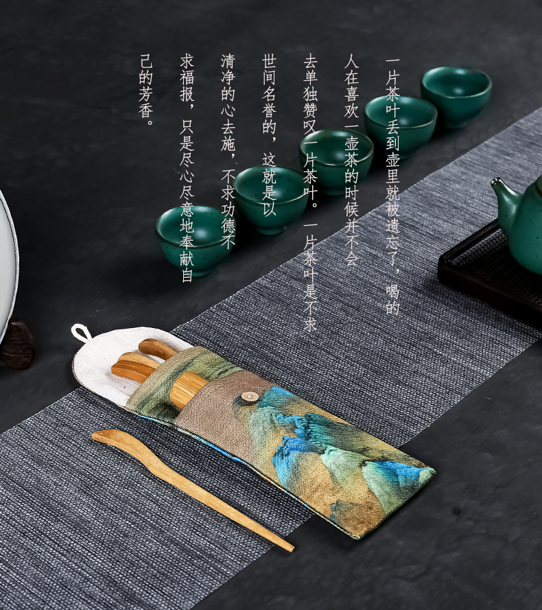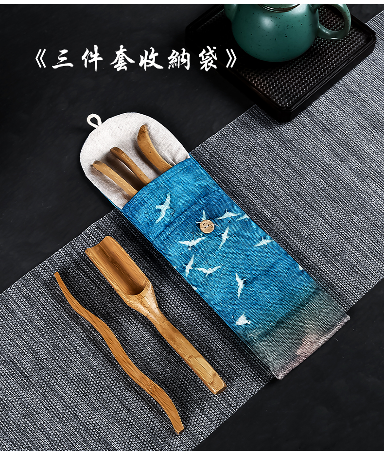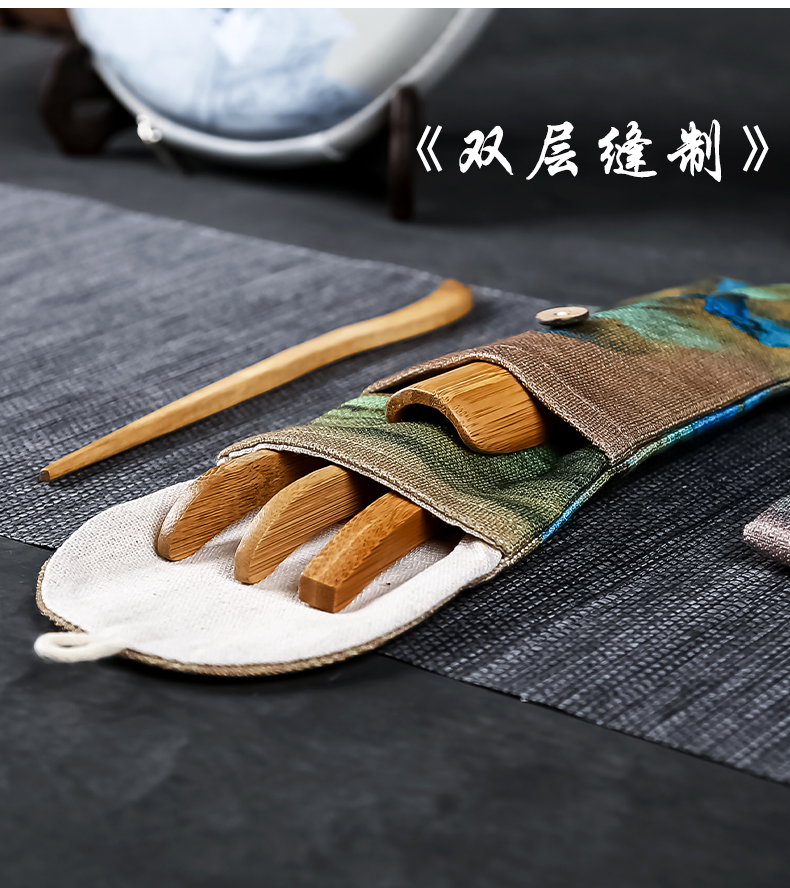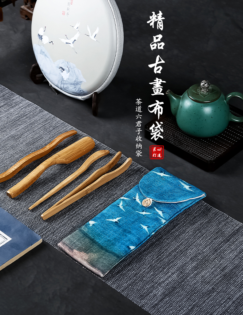 国風名画三点セット綿麻収納袋セットカンフー茶道具布袋茶挟み六君子茶道付属品
