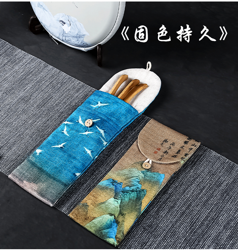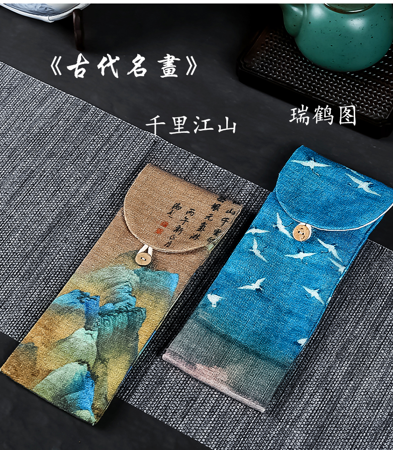 カラー 千里江山3点セット収納袋,瑞鶴図三点セット収納袋