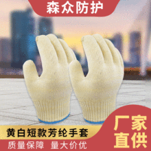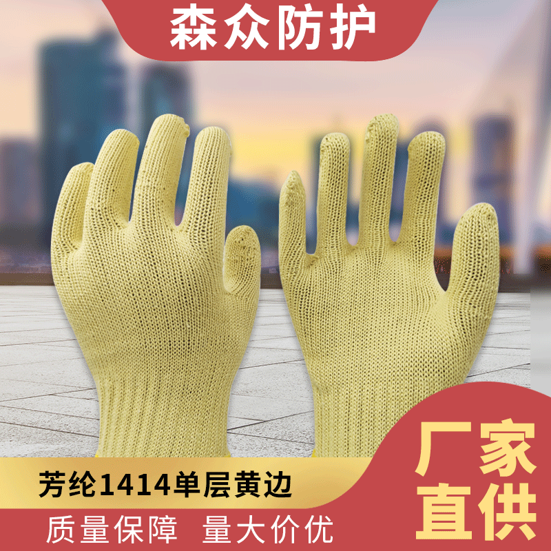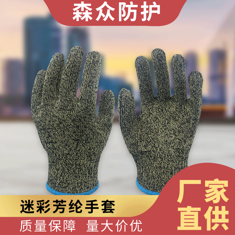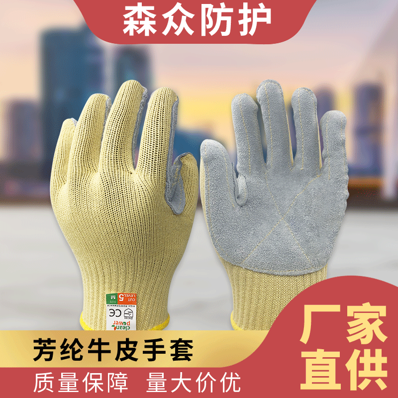 手套劳保抗磨户外工作工地工人干活耐用10针芳纶贴牛皮防割手套