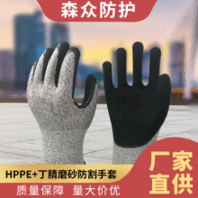 HPPE丁腈磨砂防切割黑手套屠宰钓鱼防水手套园艺木工专用防割手套