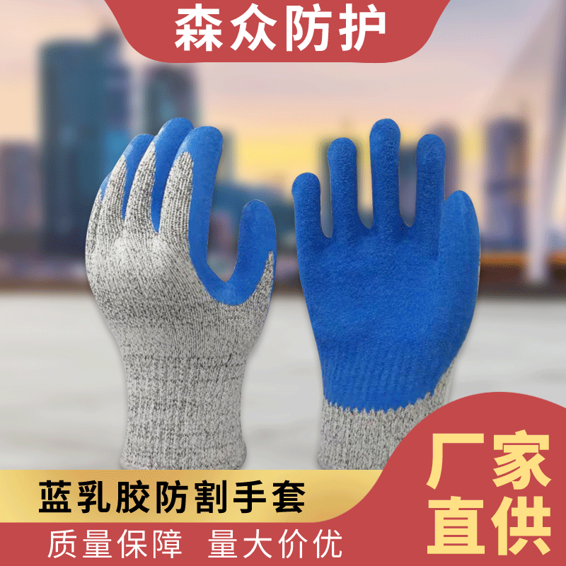 厂家直供 蓝乳胶防护加厚抗磨防划防割作业劳工通用劳保手套