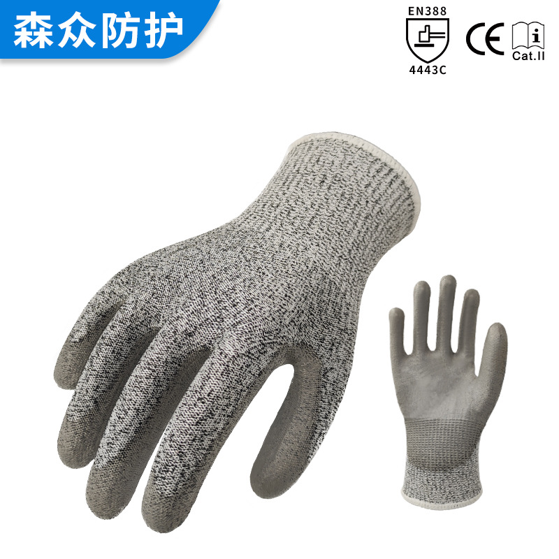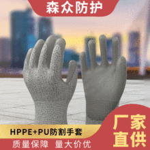劳保手套 厂家直供 HPPE+PU级防切割PU手套 抗磨防割防护手套
