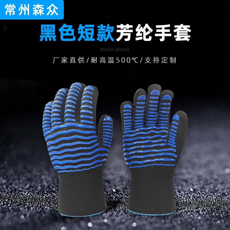 500度耐高温硅胶短款芳纶手套烧烤蒸箱隔热手套厂家专业生产销售