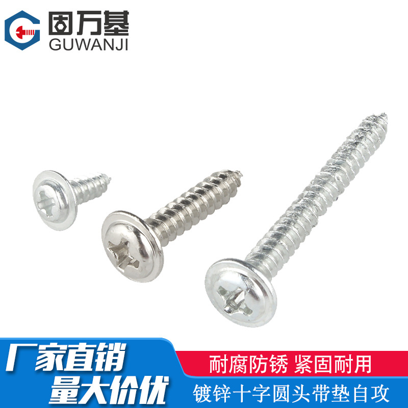 華司木タッピングねじ-大平頭尖尾木ねじ亜鉛メッキ十字大キャップパッド付き中間子ねじ4.2