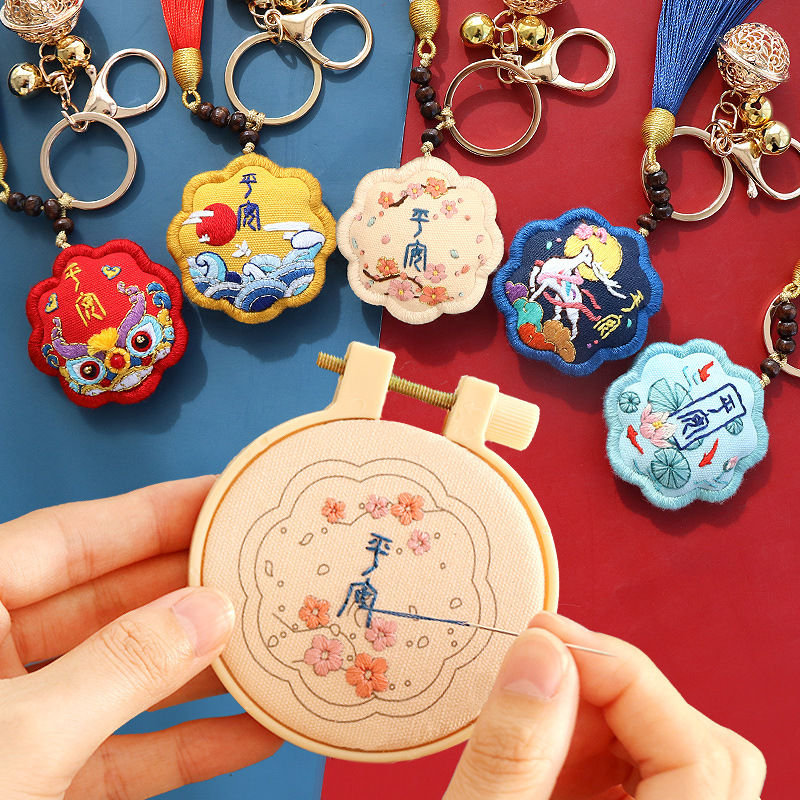 平安記号の手作り刺繍diyは彼氏に自分で刺繍して材料を作って香嚢の香包の鍵を包んで平安福を掛けます。