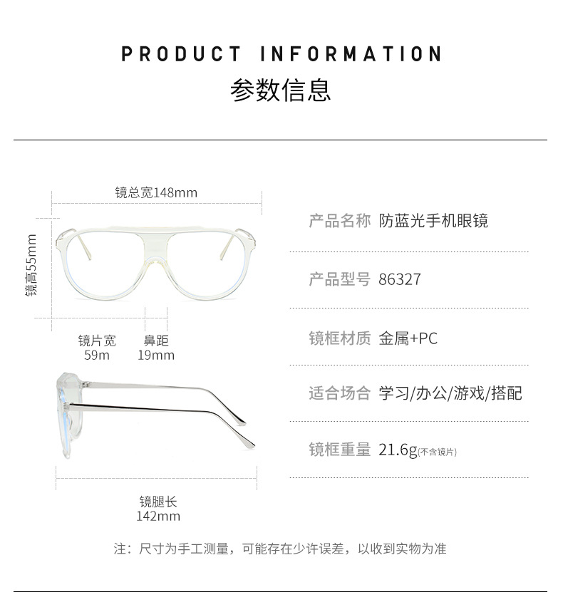 | 双梁飞行员墨镜 | 无框切边 | 素颜平光镜 | ||