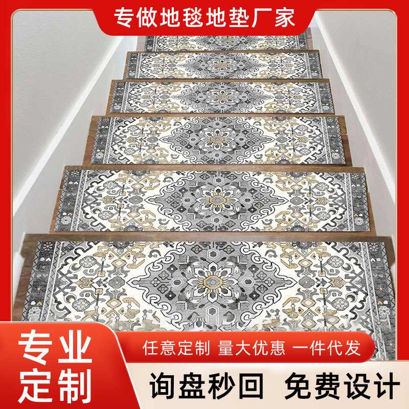 国境を越えたアマゾン模様のプリント階段マット家庭用階段ステップマット汚れに強い静音滑り止めマット