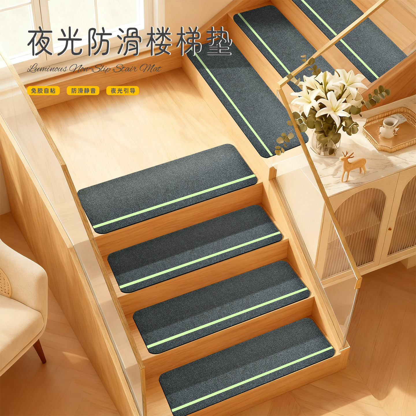 批发免胶自粘家用夜光楼梯踏步垫台阶静音防滑地垫实木楼梯垫脚垫