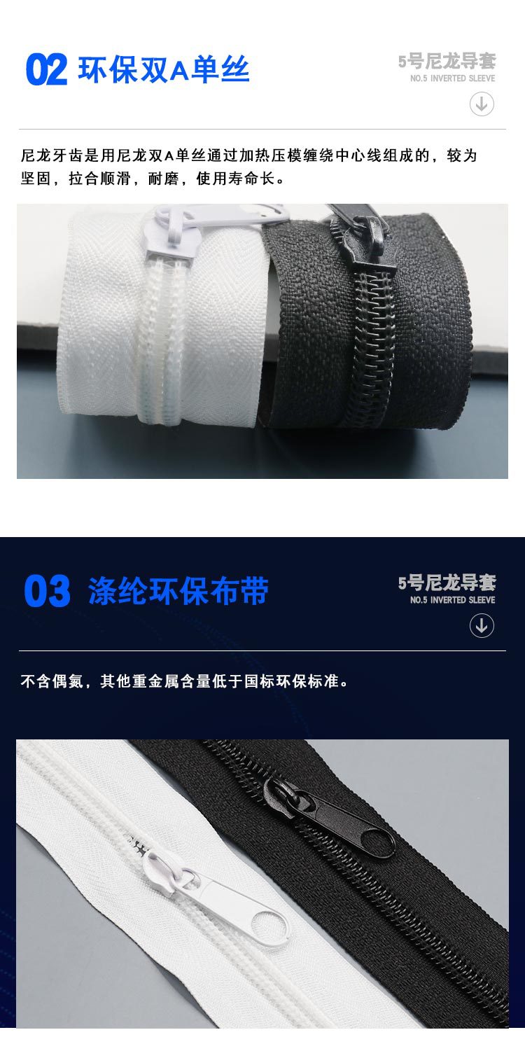 OCOジッパー工场カスタム衣料品ポケットバッグ用5番シルバー歯チタン合金クローズドテールジッパー