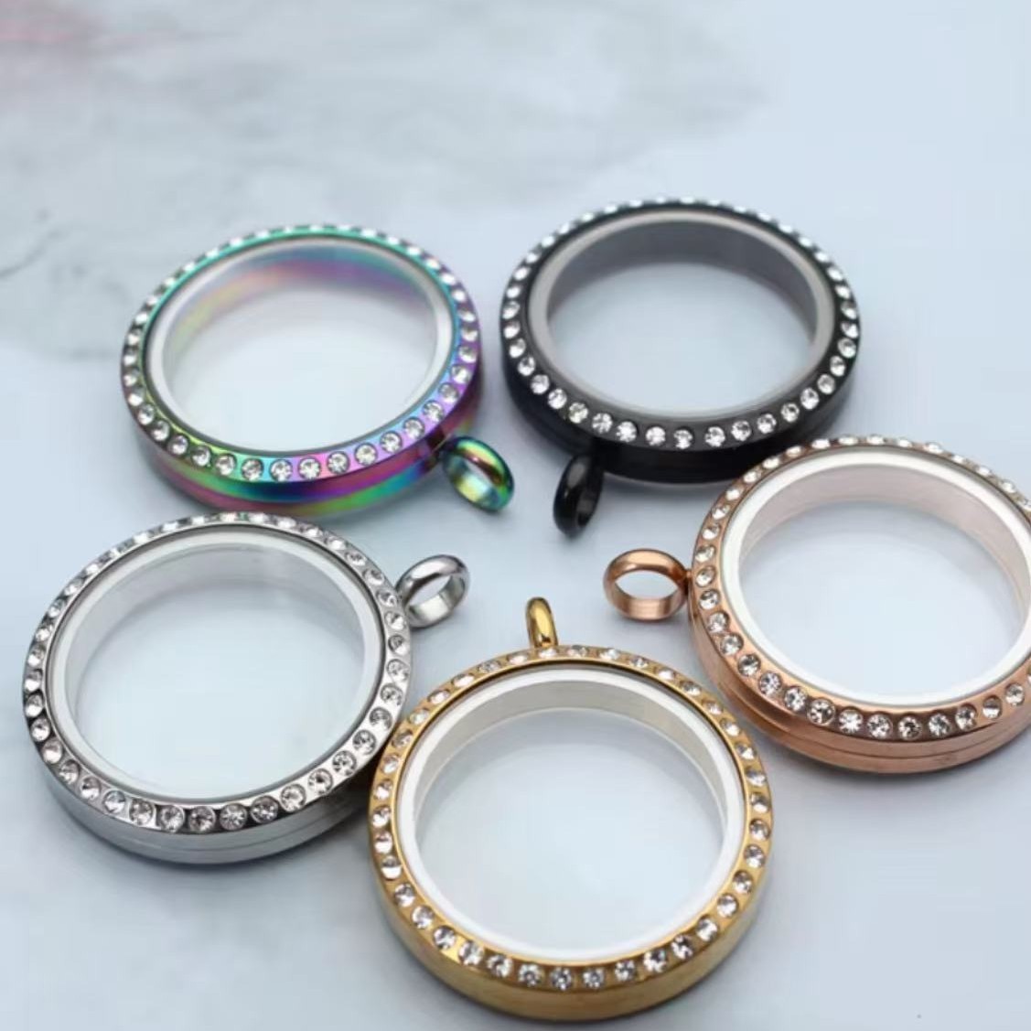国境を越えた人気DIYアクセサリー合金製フォトボックス丸型ガラス人気商品開閉式ペンダントネックレス女性用ジュエリー