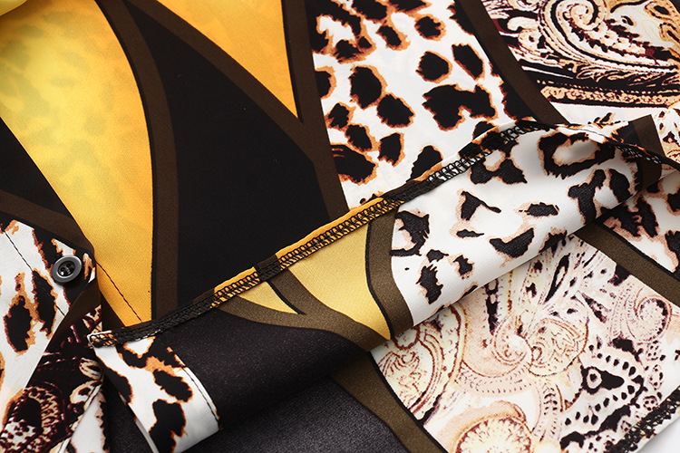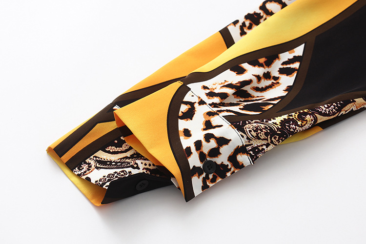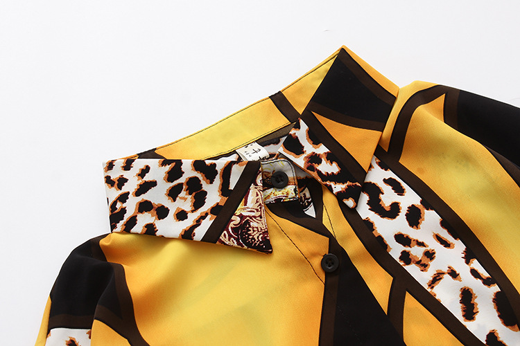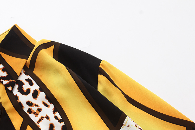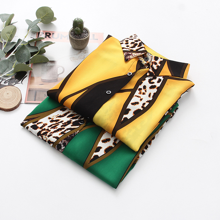 実拍春装新商品2022韓国版洋気衝突色プリント豹紋シフォンシャツ女性上着長袖シャツ