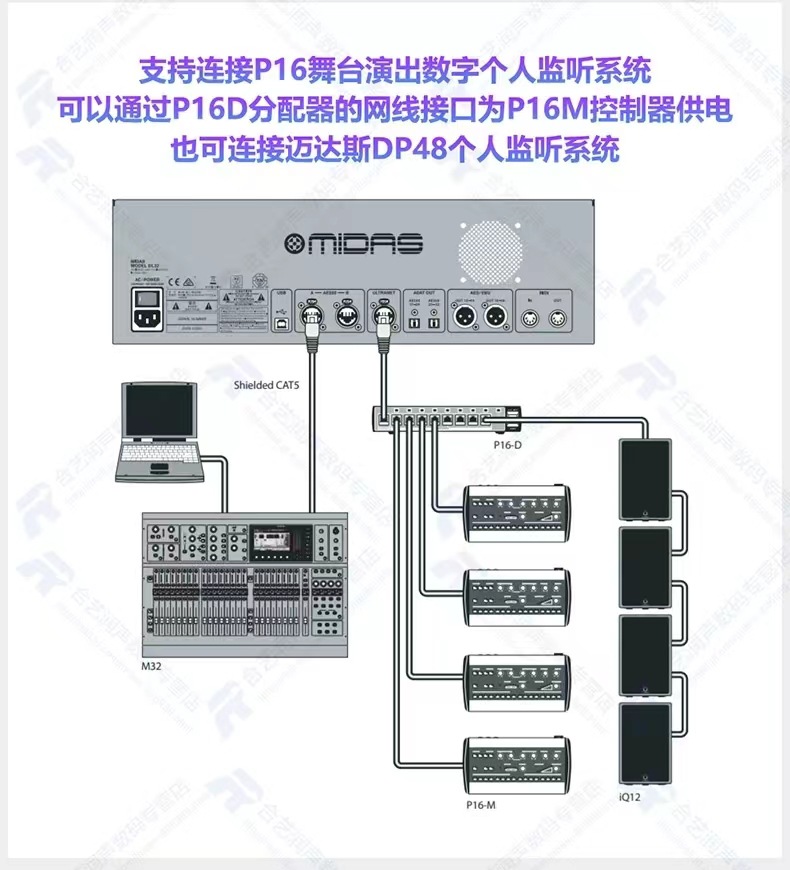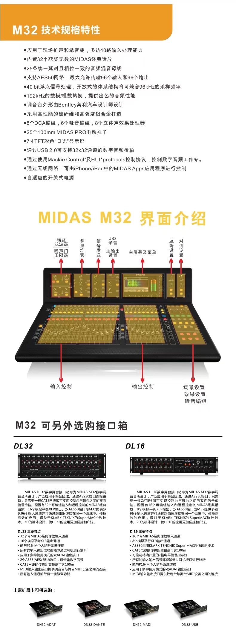 Midas/マイダスm32 m32r liveステージ会议デジタル调音台dl32 dl16インターフェースボックス
