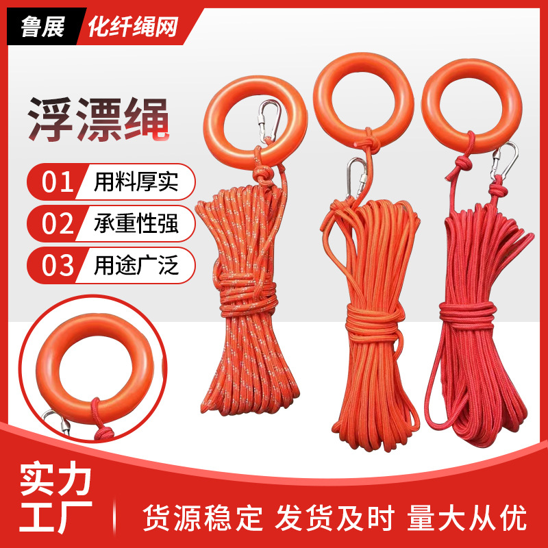 水上漂浮绳 橡胶环橙色反光水上漂浮绳 导向绳打捞绳钩环救生
