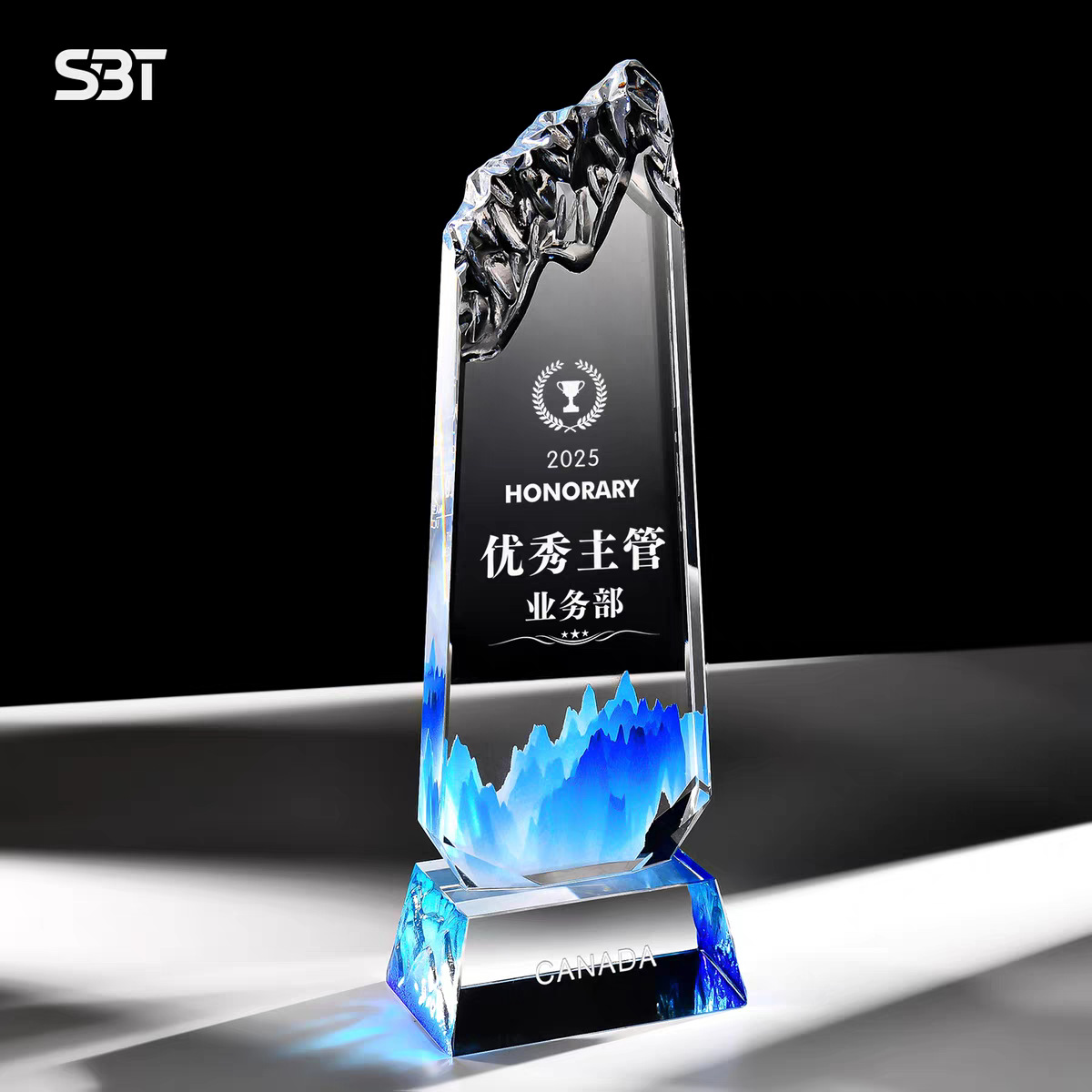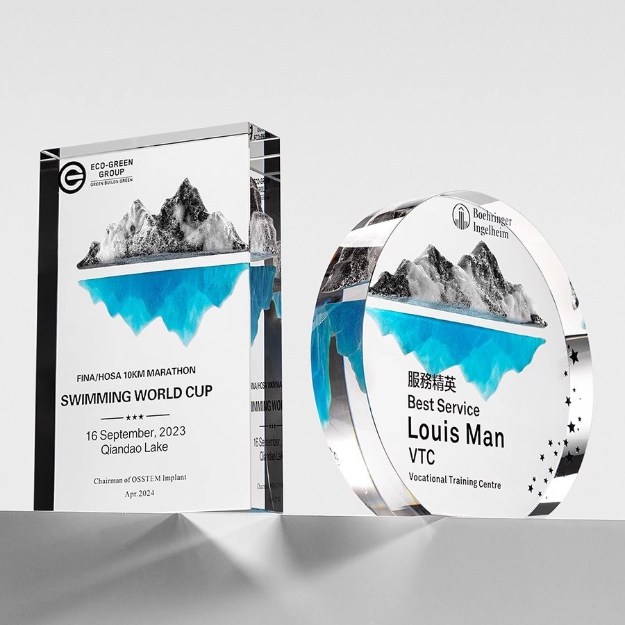 设计刻字创意冰山彩印水晶奖杯企业优秀员工奖品荣誉颁奖年会奖牌