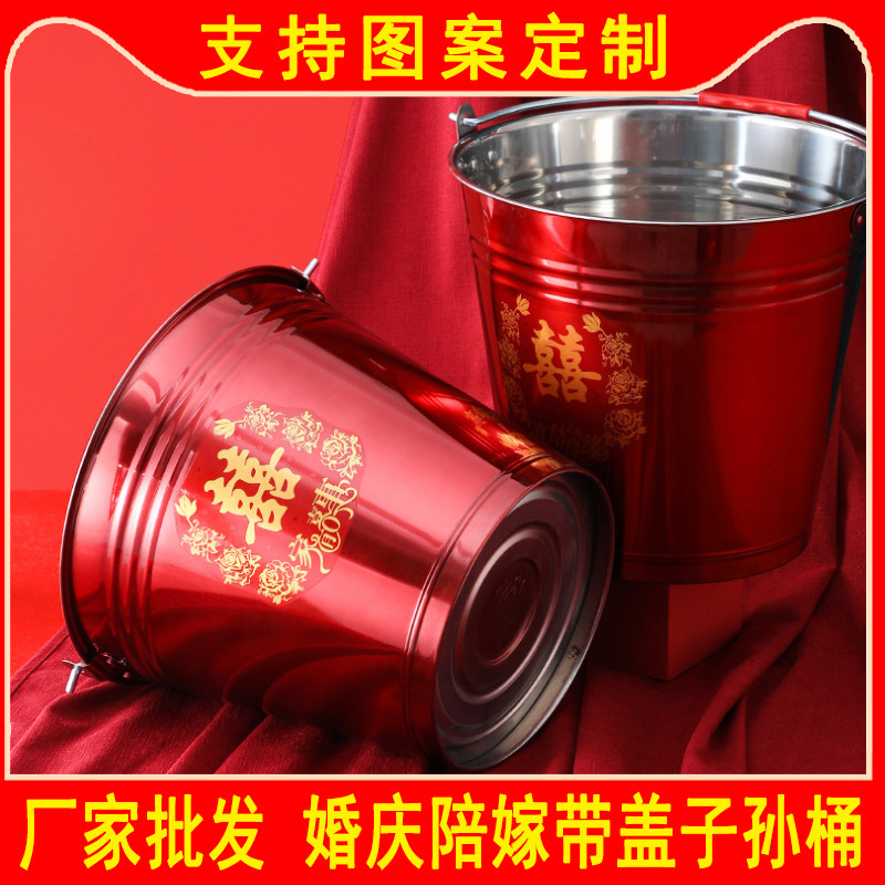 結婚喜桶の花嫁は赤い結婚祝いの孫桶ステンレスのバケツに引っ越しました。