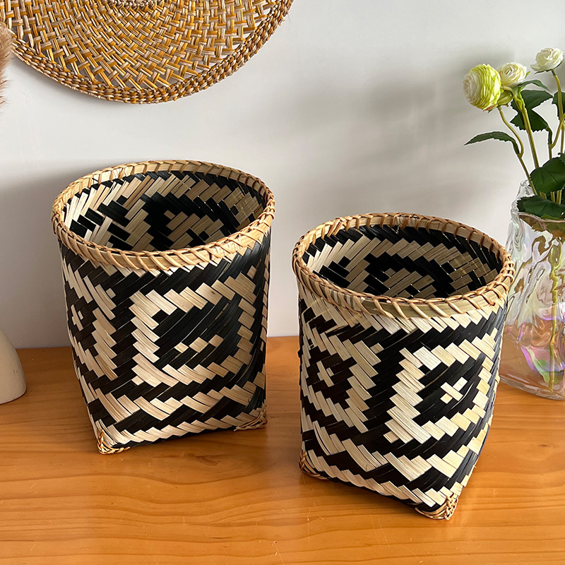 元現物boho trash can竹編ゴミ箱家庭用客間創意紙かご中国式復古環境保護