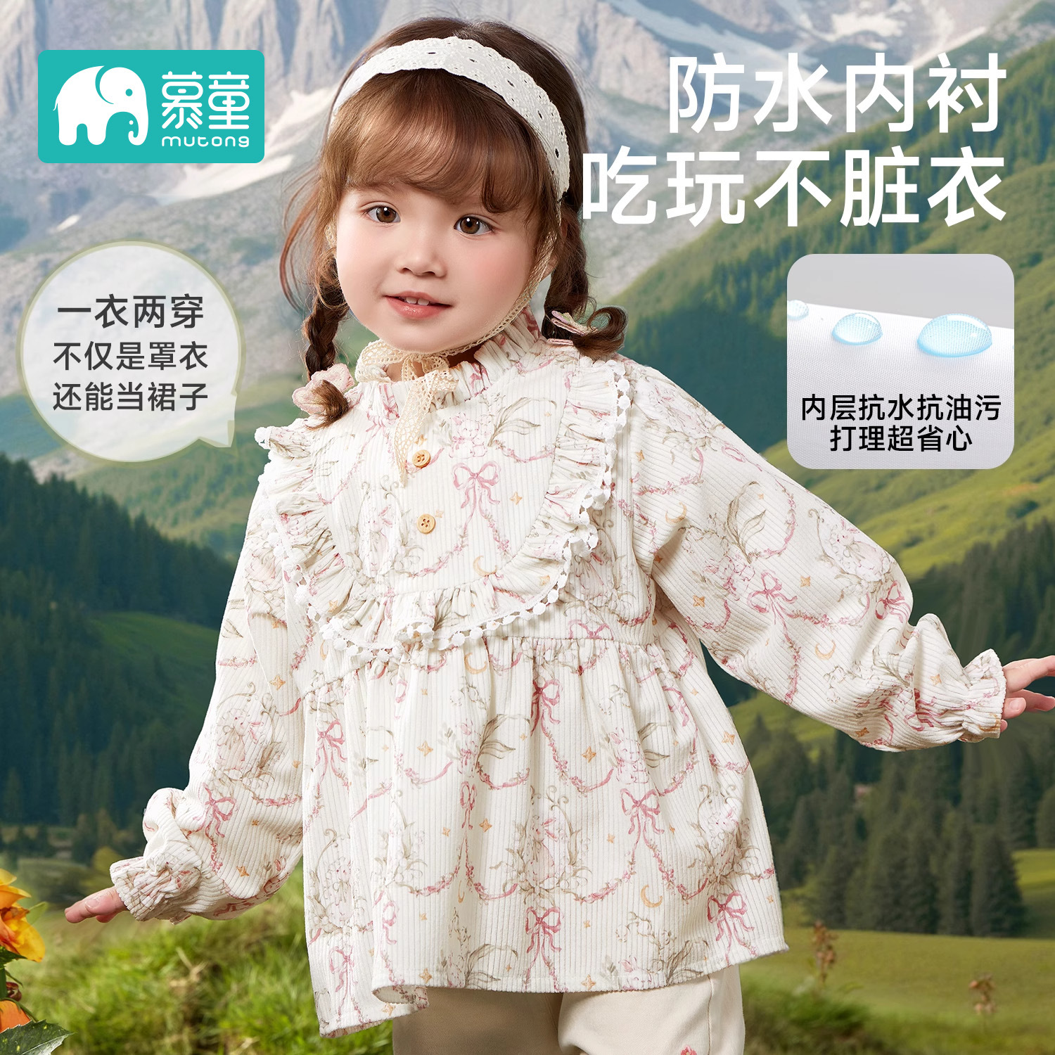 面料和防水层:罩衣是整个是纯棉面料 罩衣内前胸有防水层