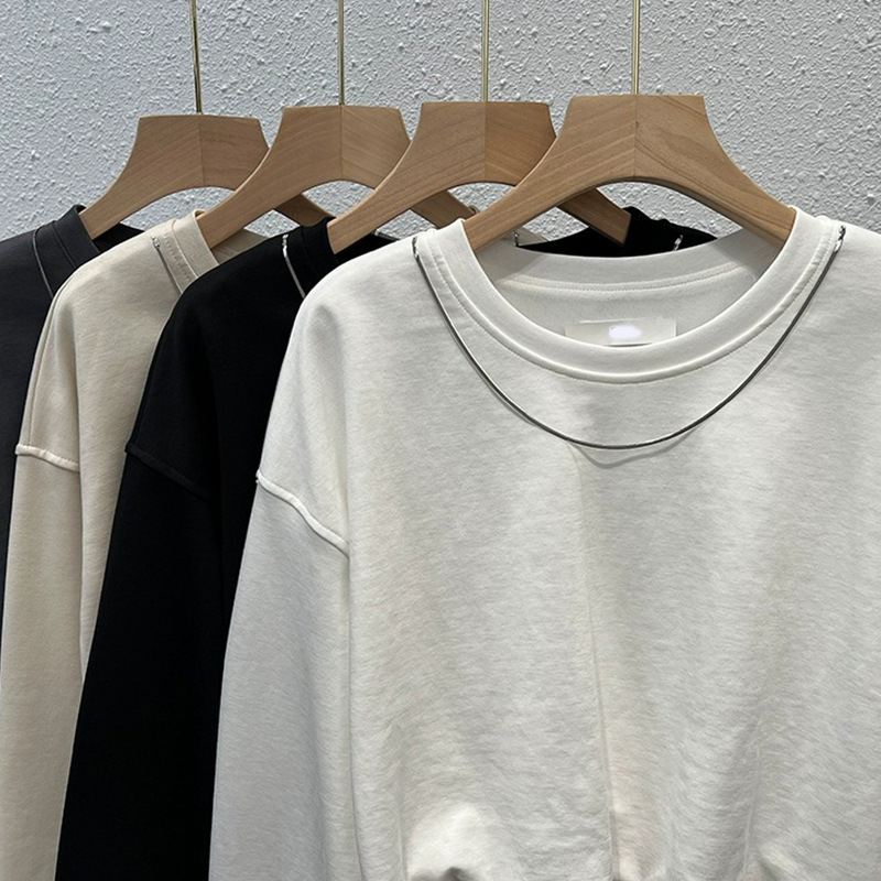 デザイン感のある長袖tシャツの女性上着秋のおしゃれなチェーンのパーカーのファッションがゆったりしています。
