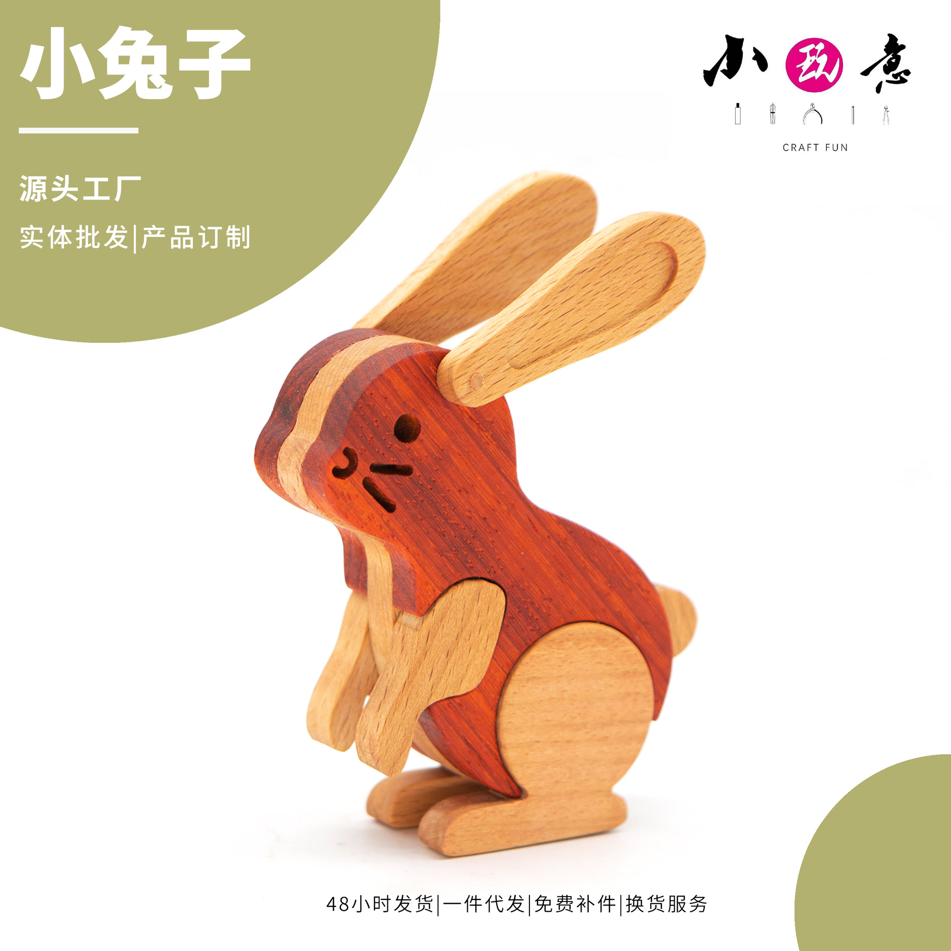 実木動物模型のウサギの木芸の実木はdiyのおもちゃの材料を詰めて手作りの坊を包んで木工の授業を育成します。