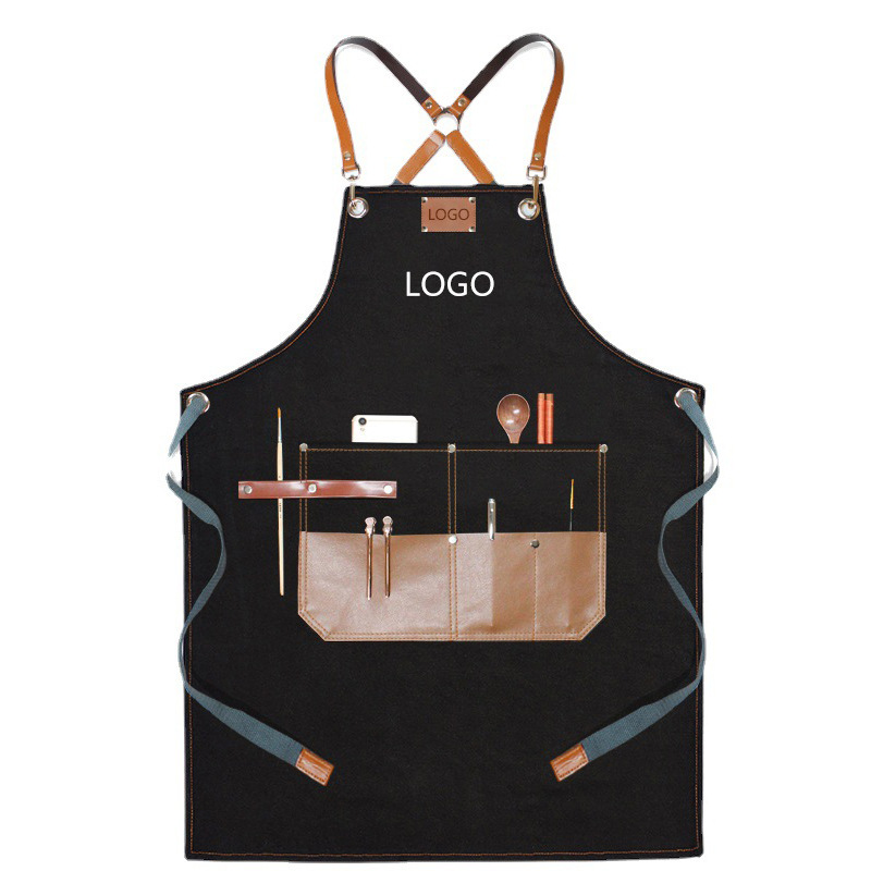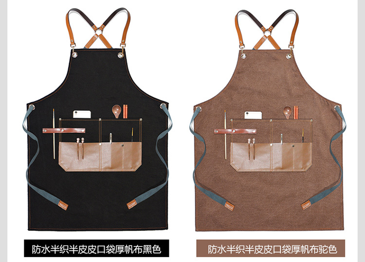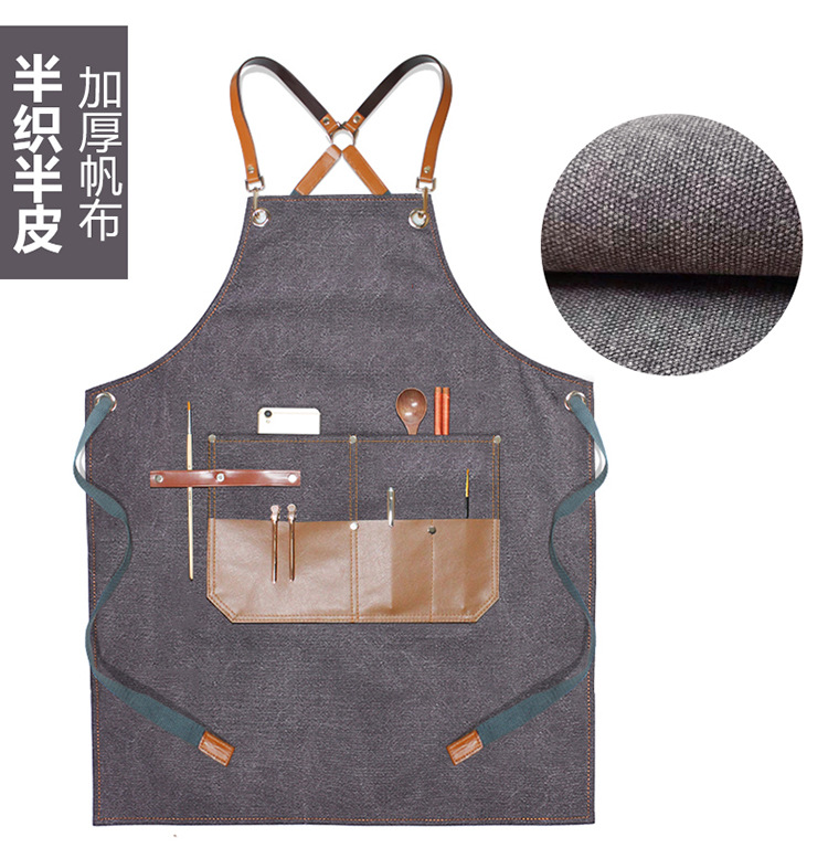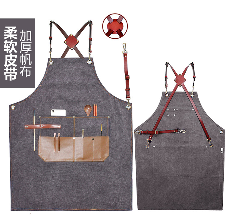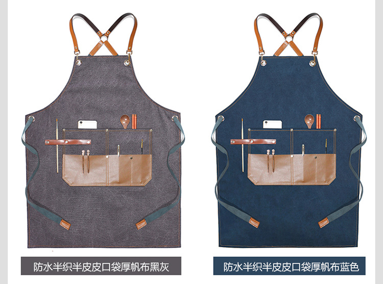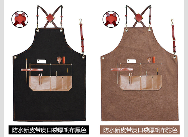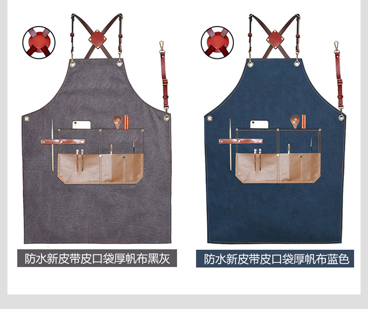 厚みのある新しいスタイルのエプロン、カスタムロゴ作業服、汚れ防止、防水、耐油、キッチン純綿キャンバスクロスボーダーアマゾン