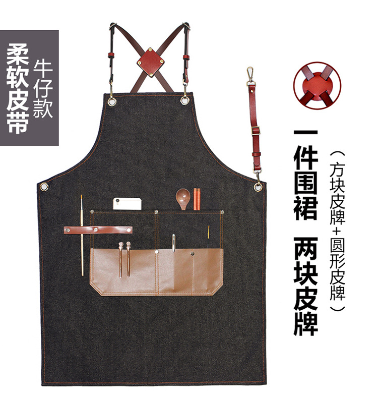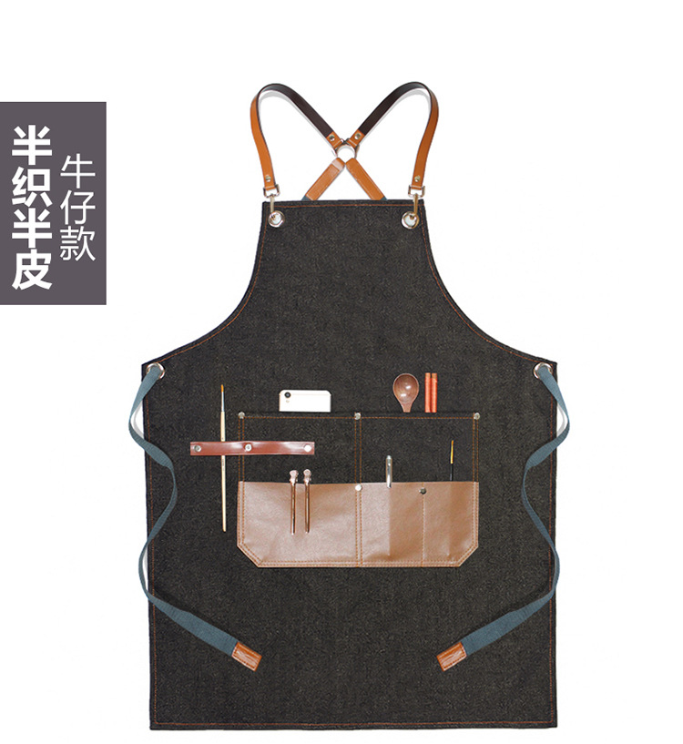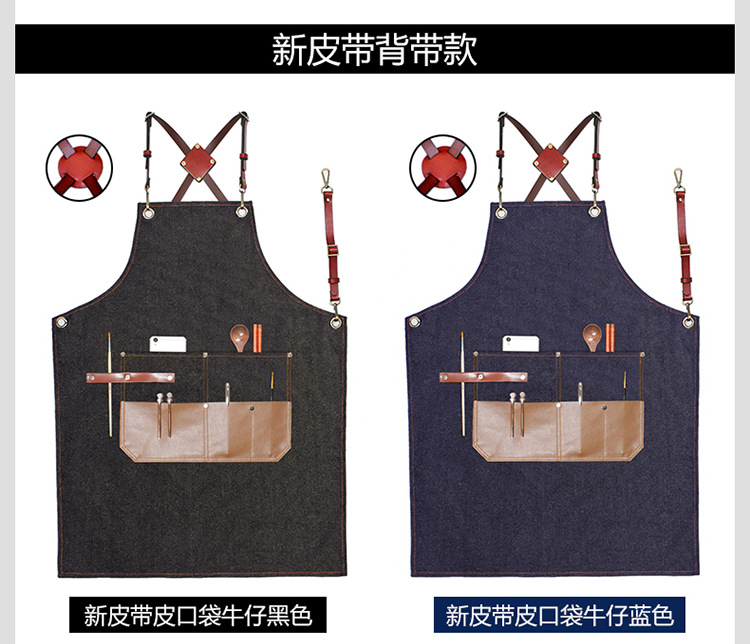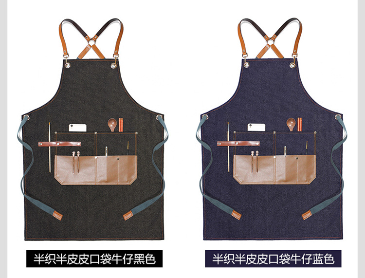 アマゾンデニムエプロン韓国風ファッション理髪師美術学生カフェ作業服厚手帆布エプロン卸売