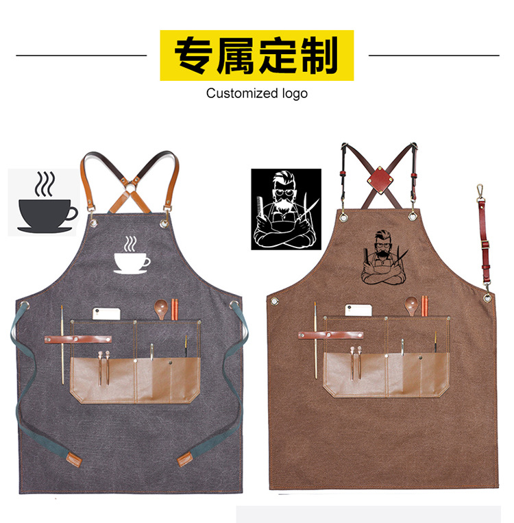 アマゾンクロスボーダーキャンバスエプロン綿オーダーメードロゴカフェ理髪師作業服エプロンメーカー卸売り
