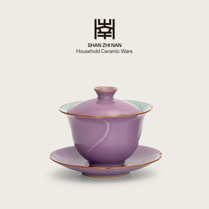 メーカー卸売り鈞窯三才蓋椀紫色中国式工夫茶器陶磁器天地蓋碗家庭用敬茶碗