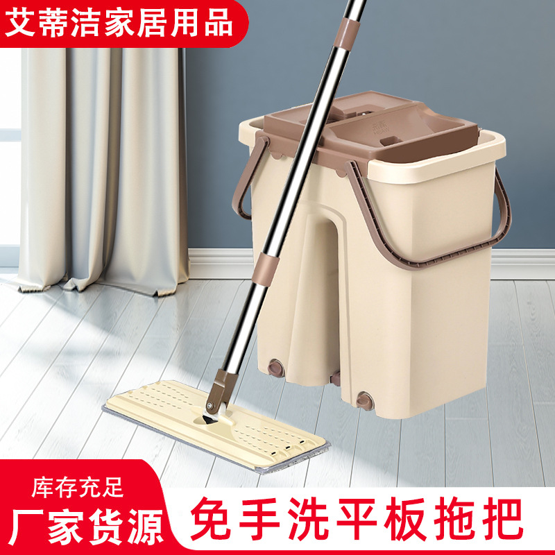 手洗い不要のフラットモップ、家庭用楽々モップバケツ、室内乾湿両用掃除、吸水性モップ収納