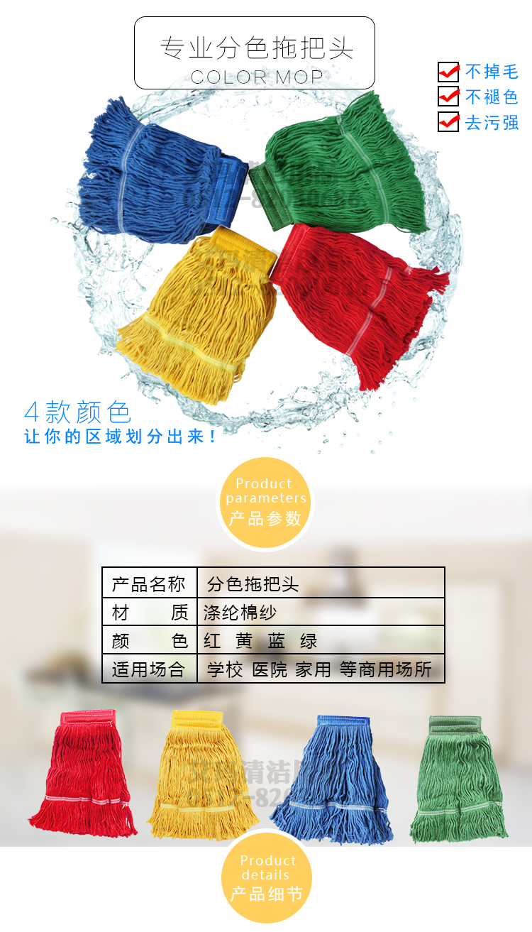 同心潔清潔四色綿糸モップの代わりに色分け水モップのカラー綿糸家庭用商用