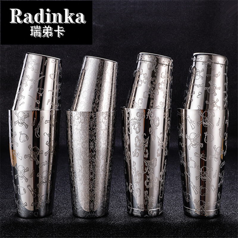 304ミラーステンレスエッチング柄ボストンバーテンダーアメリカンシェーカー