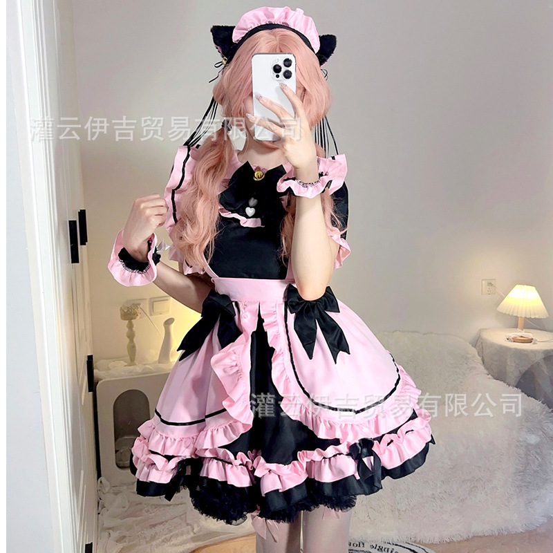 甘い黒粉メイド服cos服装ロリータ柔らかい妹ワンピースアニメ重工女中Lolitaスカート