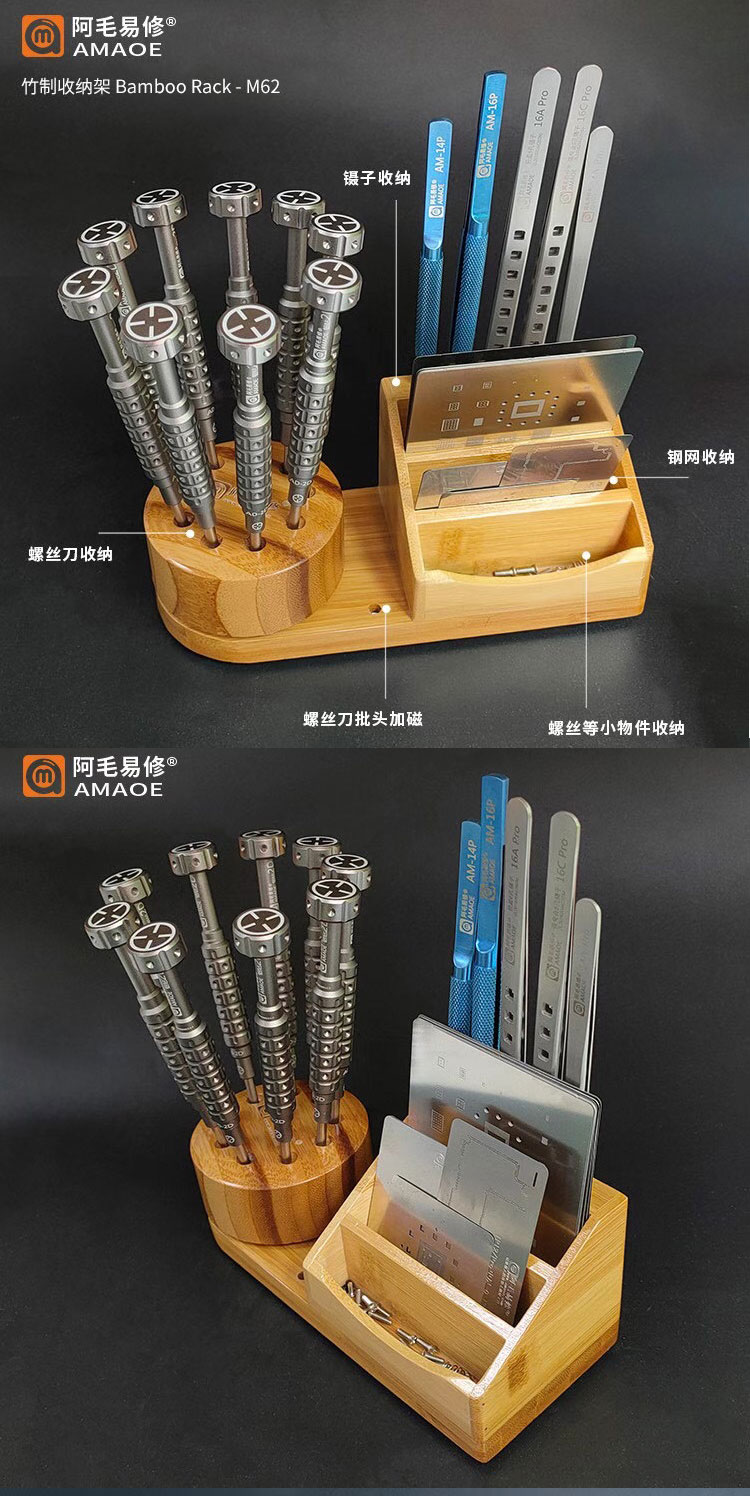 阿毛易修木製収納棚m62/回転ドライバーホルダーピンセットスチールネット携帯電話修理ツール収納ケース