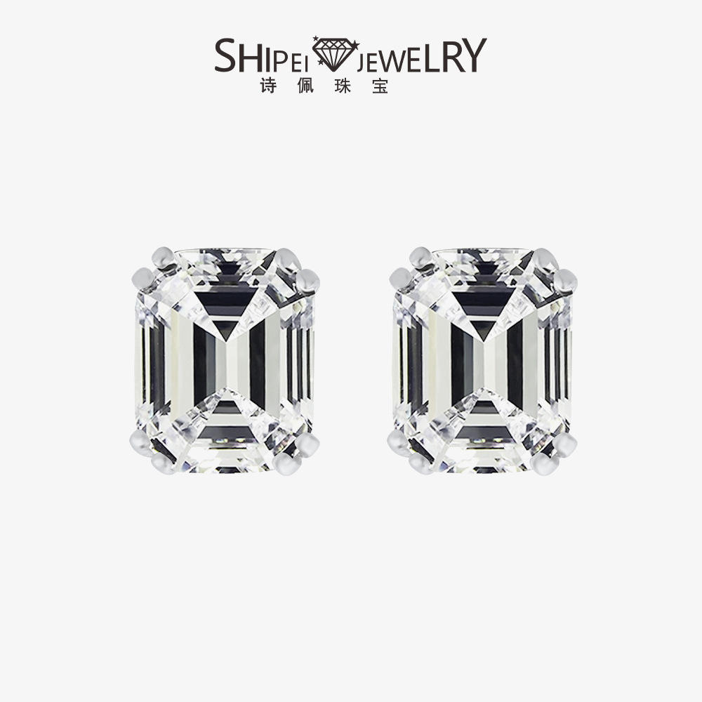 詩佩珠対外貿易同金4ctアズ切断長方形宝塔8*10高炭素ドリル925銀白G色ピアス女