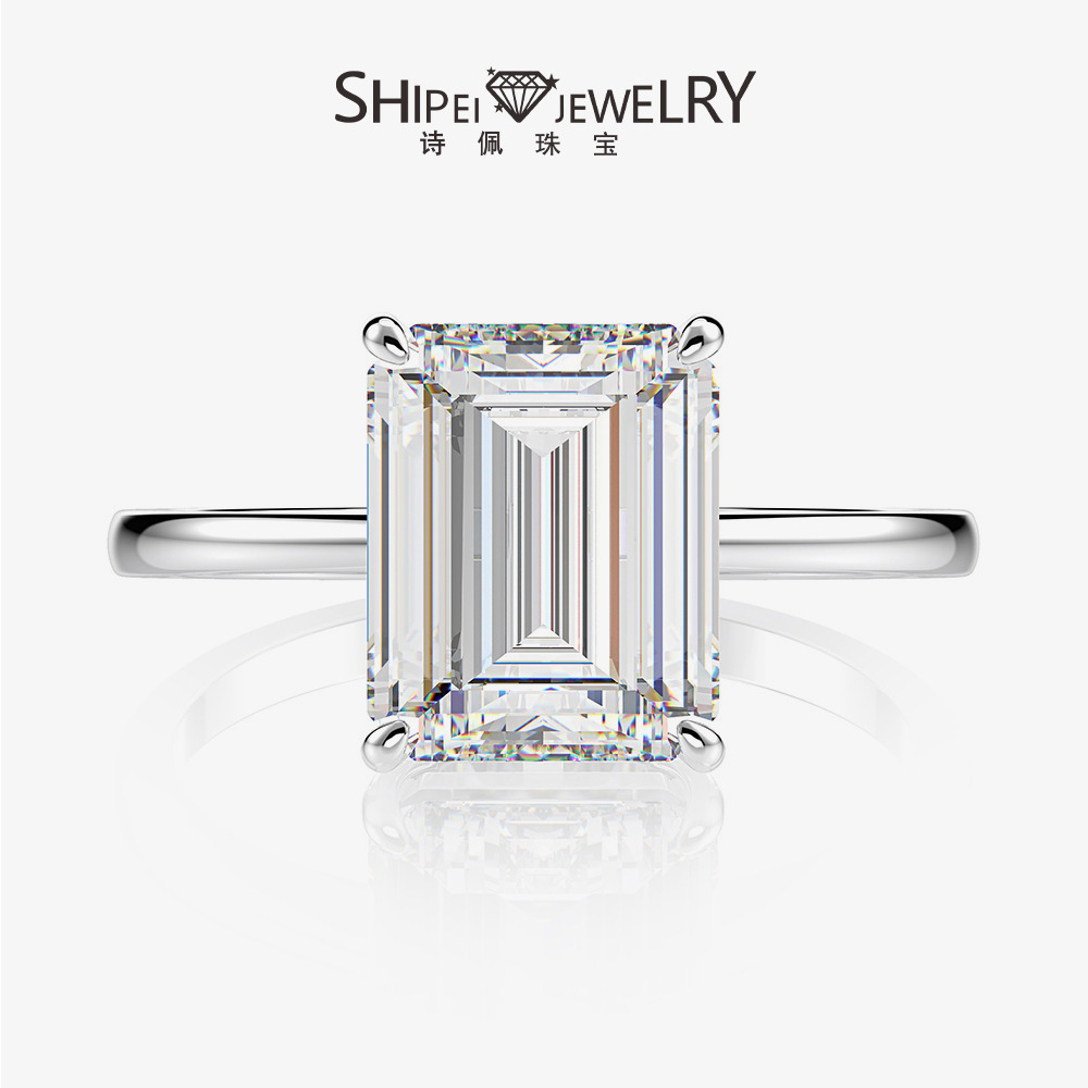 詩佩ジュエリー欧米熱売925銀4ct高炭素ドリル8*11長方形祖母緑カット指輪女性シンプル