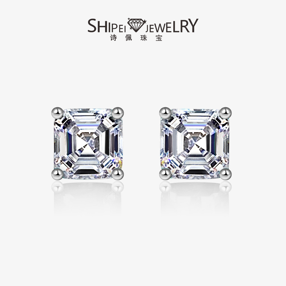 詩佩ジュエリー欧米の熱売1ct長方形5*7四爪シミュレーションドリルイヤリングシンプルなイヤリング女性