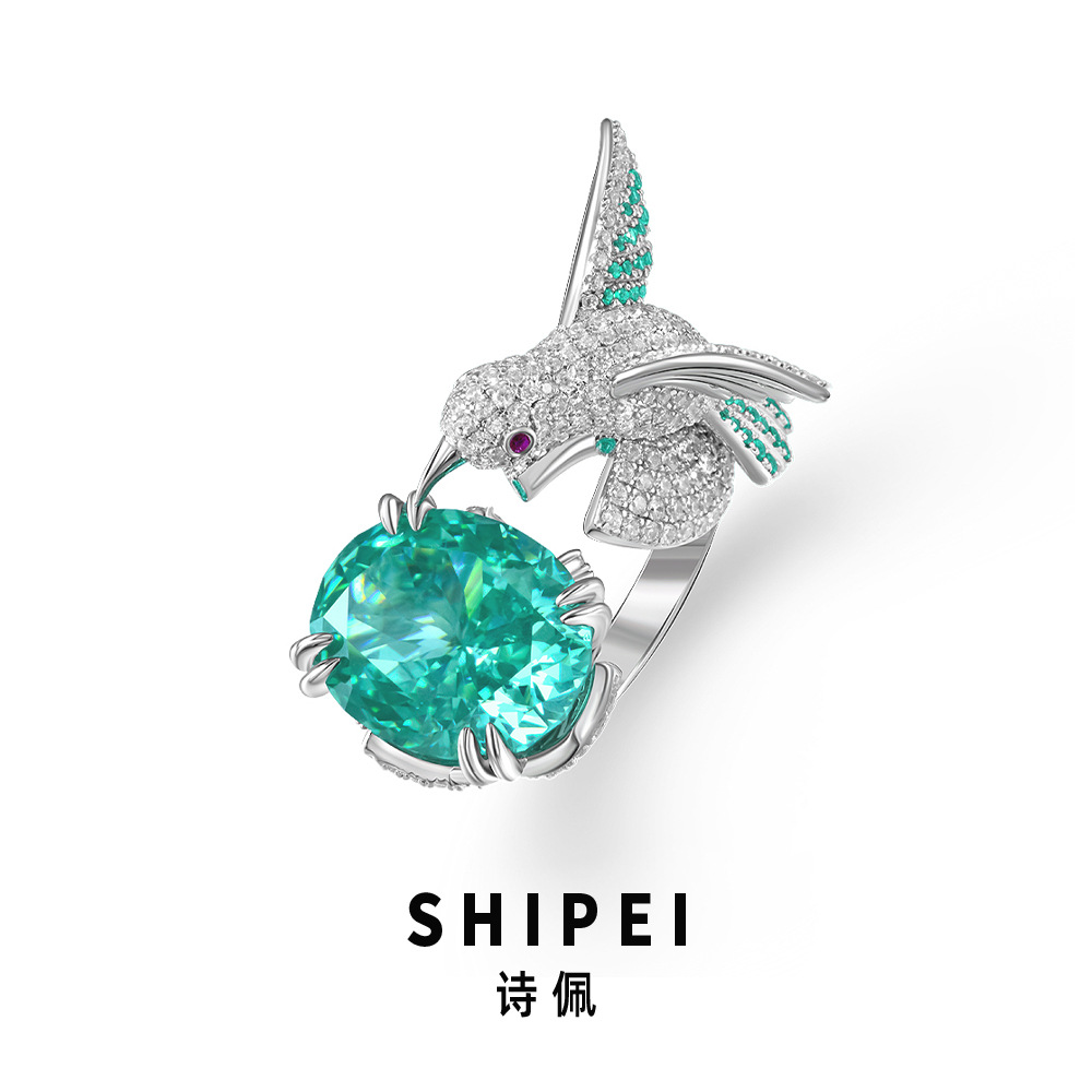 詩佩対外貿易熱売8カラット卵形13*16合成パライバS925純銀指輪