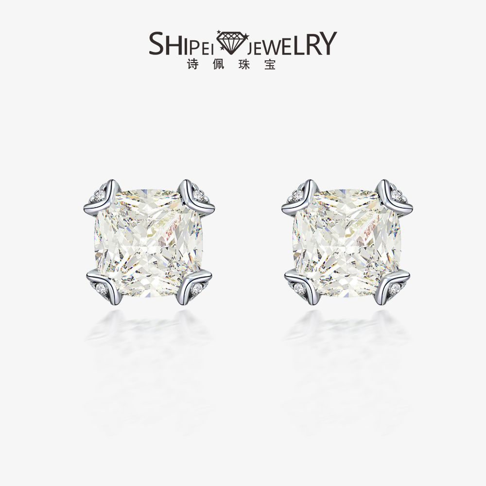 詩佩宝飾品生放送同金925銀肥方8*8欧米高炭素ドリルイヤリング女