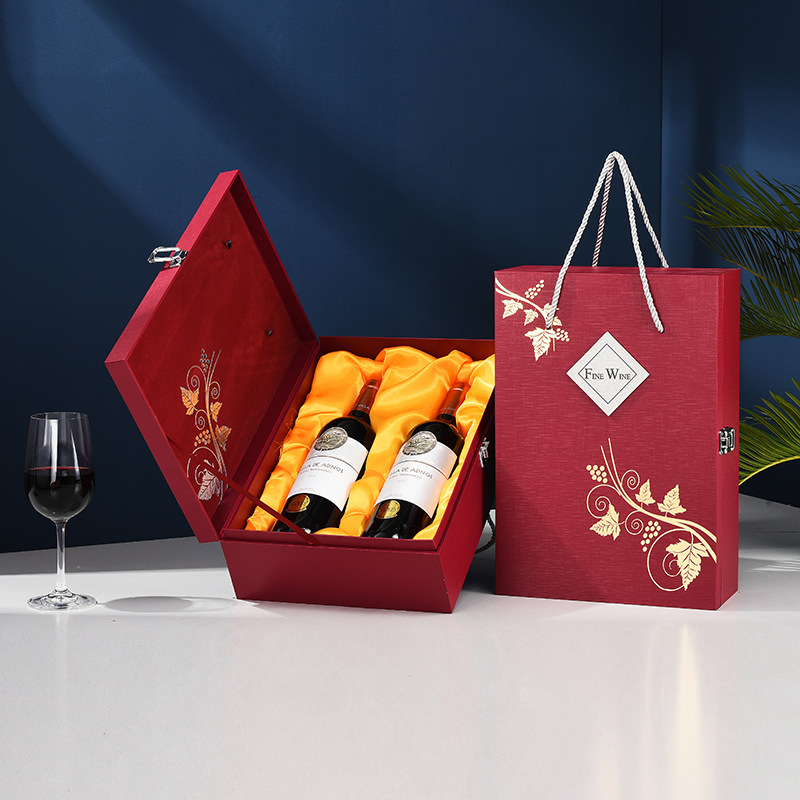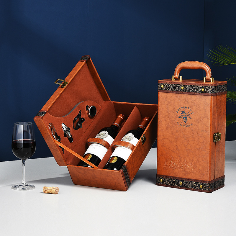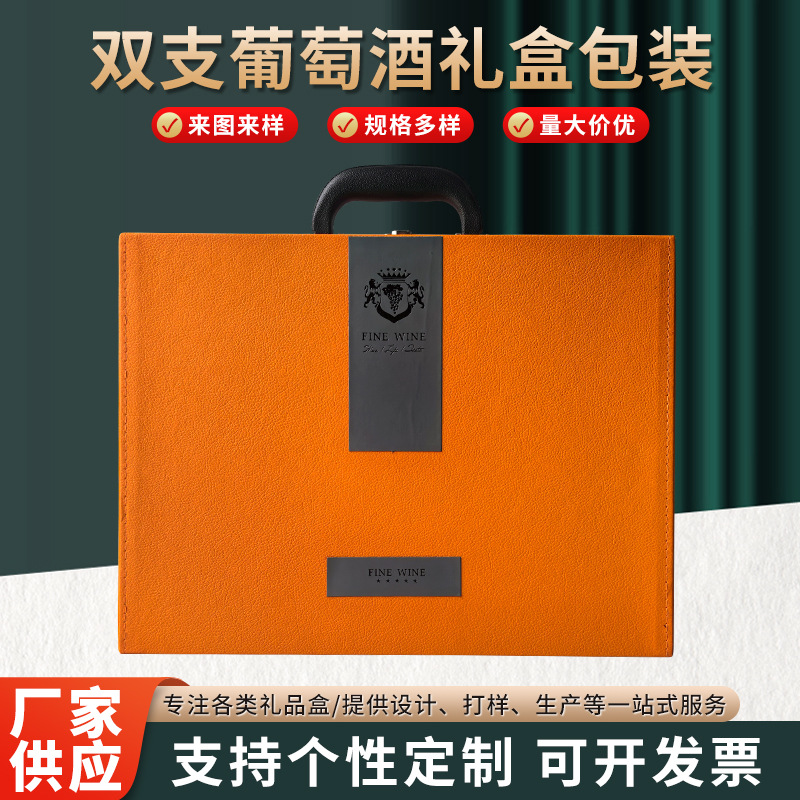 スポット卸売赤ワイン包装ギフトボックス、ダブル赤ワインレザーボックス、ワイン包装、赤ワインギフトボックス包装箱