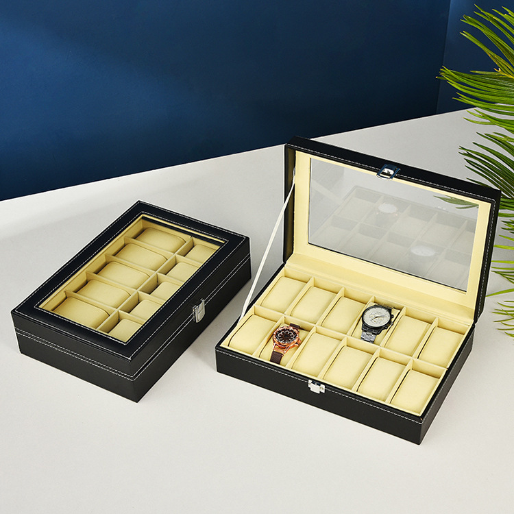 腕時計ボックス卸売 レザーボックス包装箱 レザー製透明窓付き収納ディスプレイボックス 空箱 時計腕時計ギフトボックス