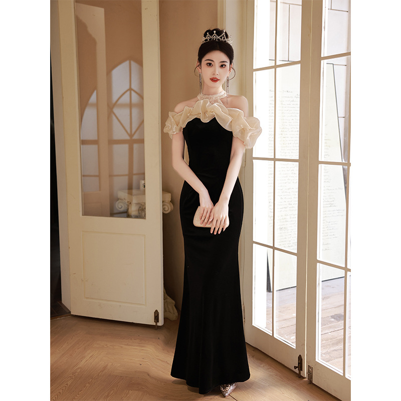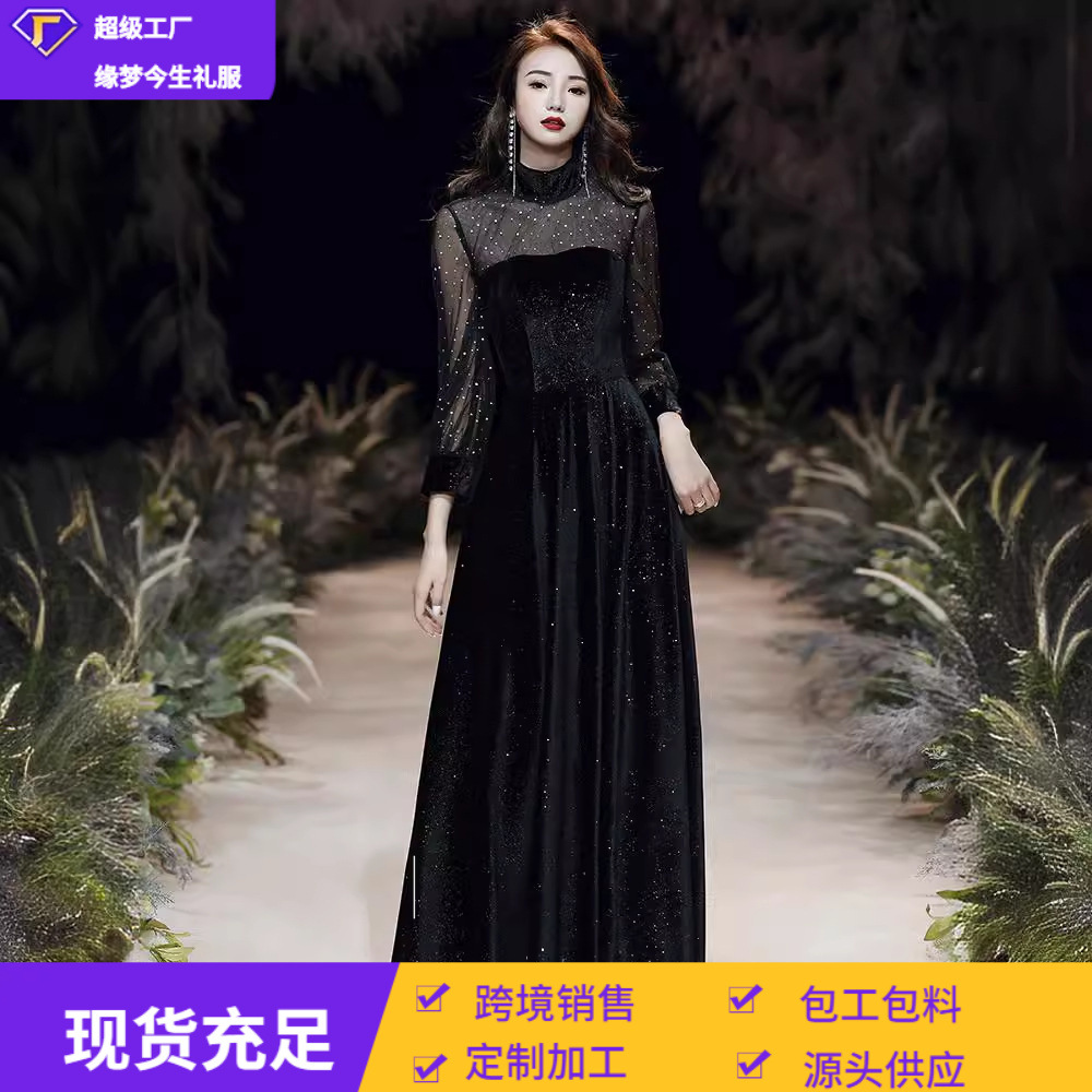 黒チャイナドレスイブニングドレス女性のための 2025 新しい中国風成人式宴会ライト高級ニッチハイエンドホストスカート