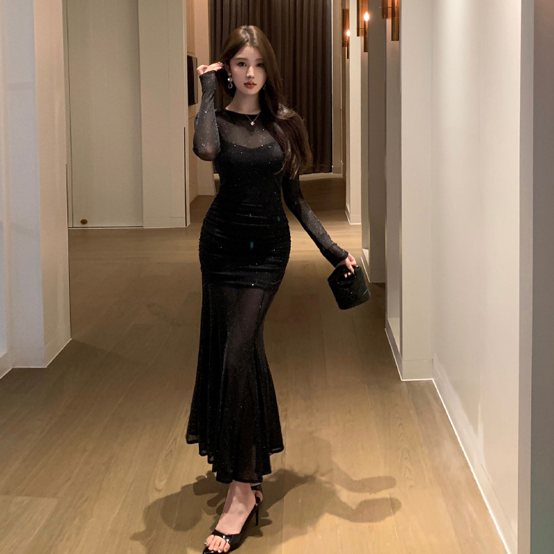 8569欧米東南アジア対外貿易卸売り2024女装気質ギャルキラキラ修身魚尾スカートワンピース