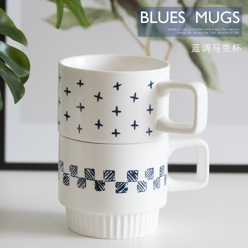 北欧ブルー調厚実セラミックマグカップ朝食ミルクコーヒーカップカップルカップセット家庭用ロゴ