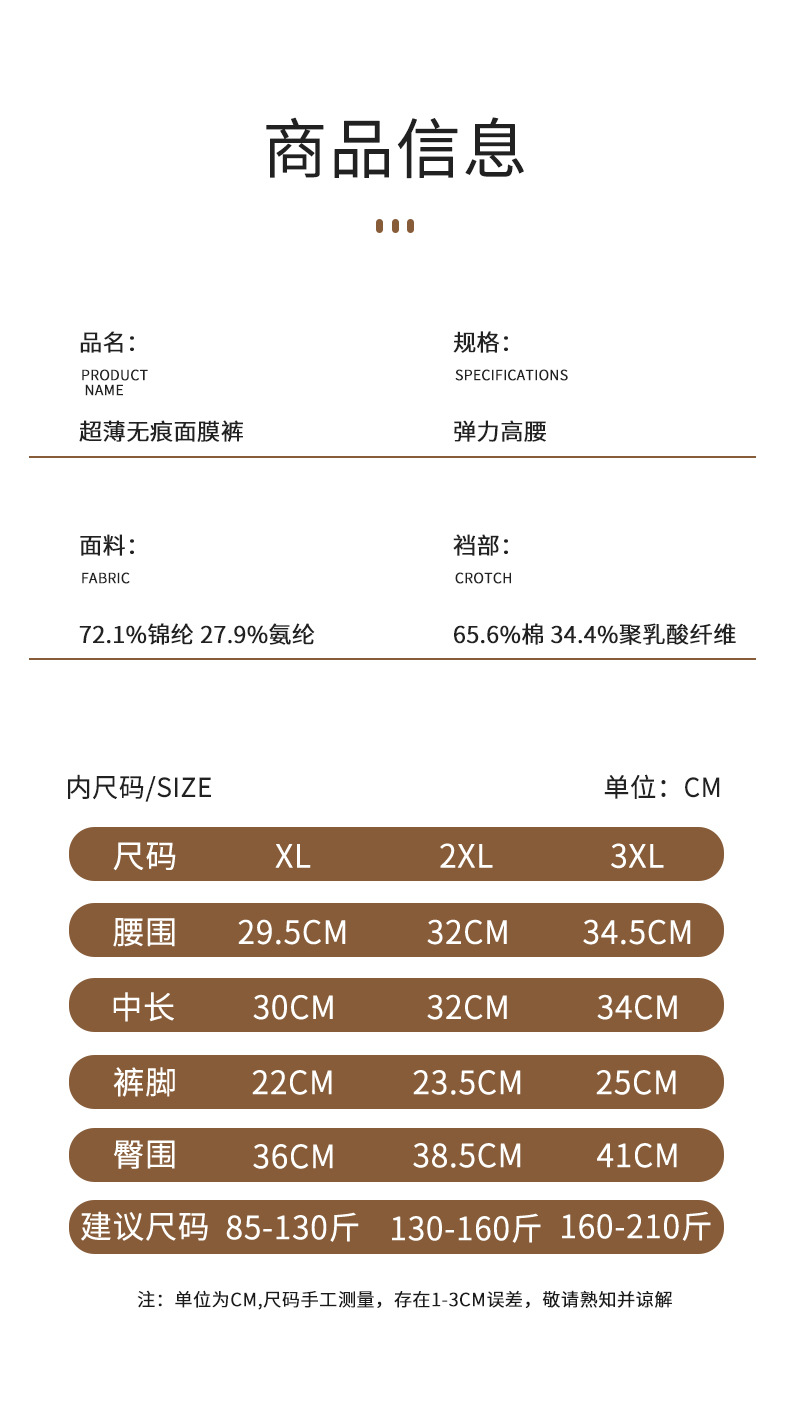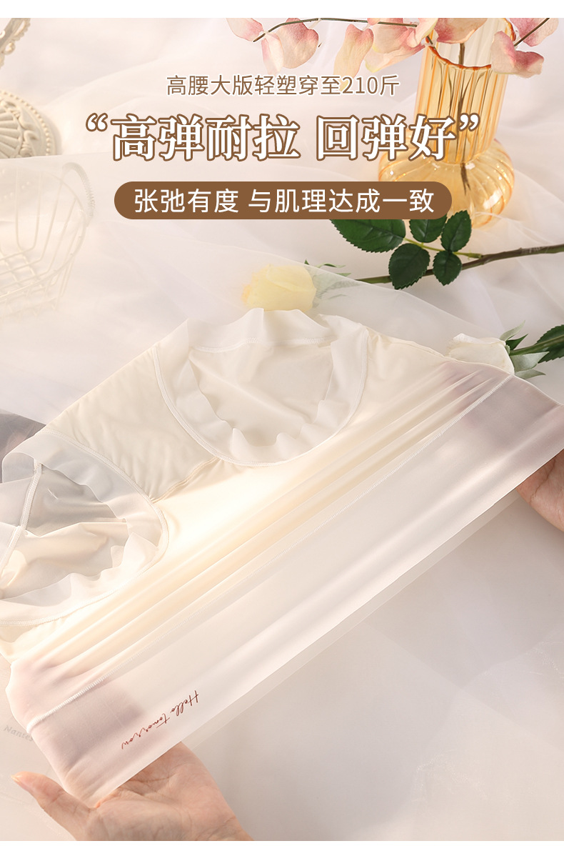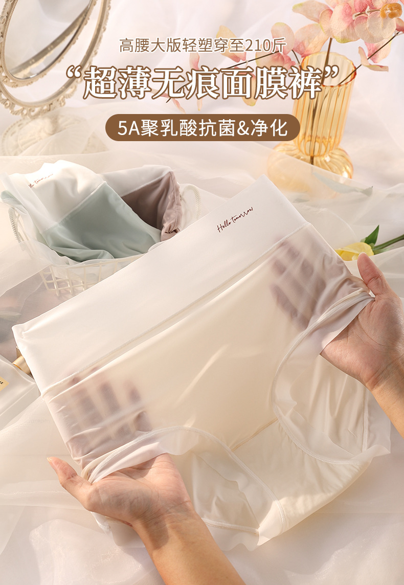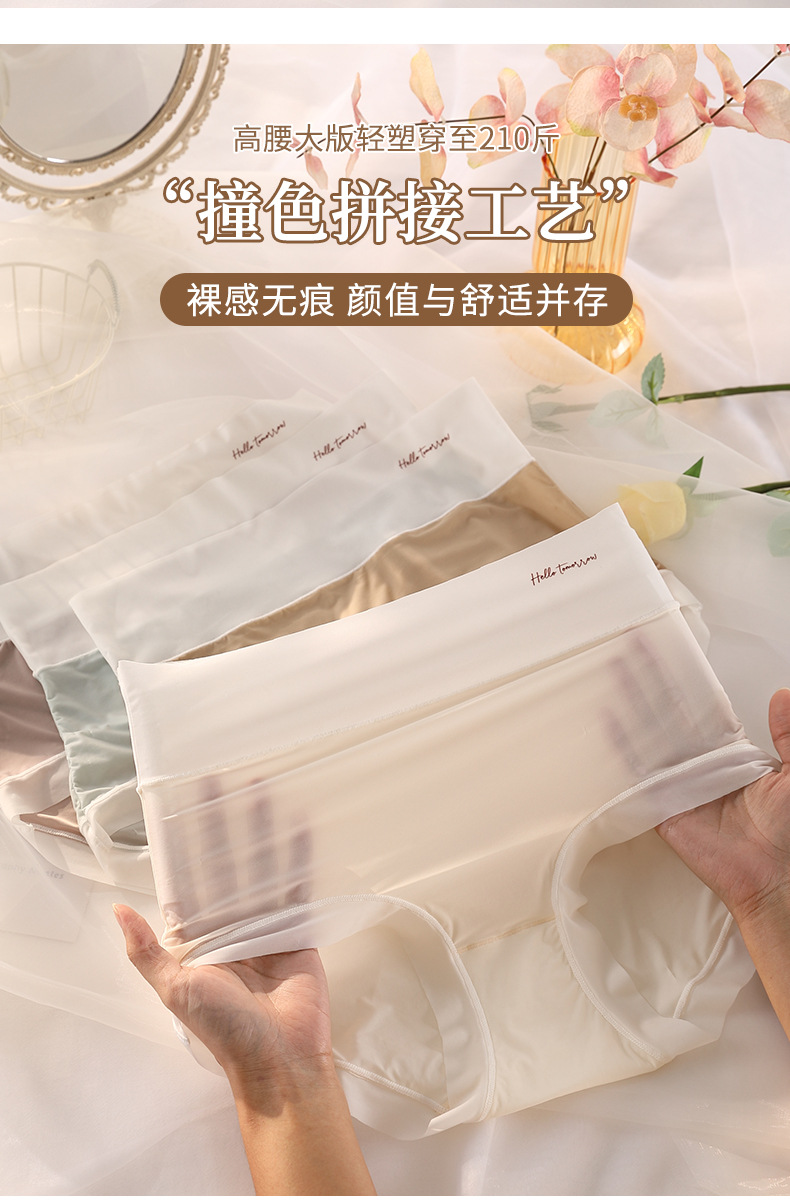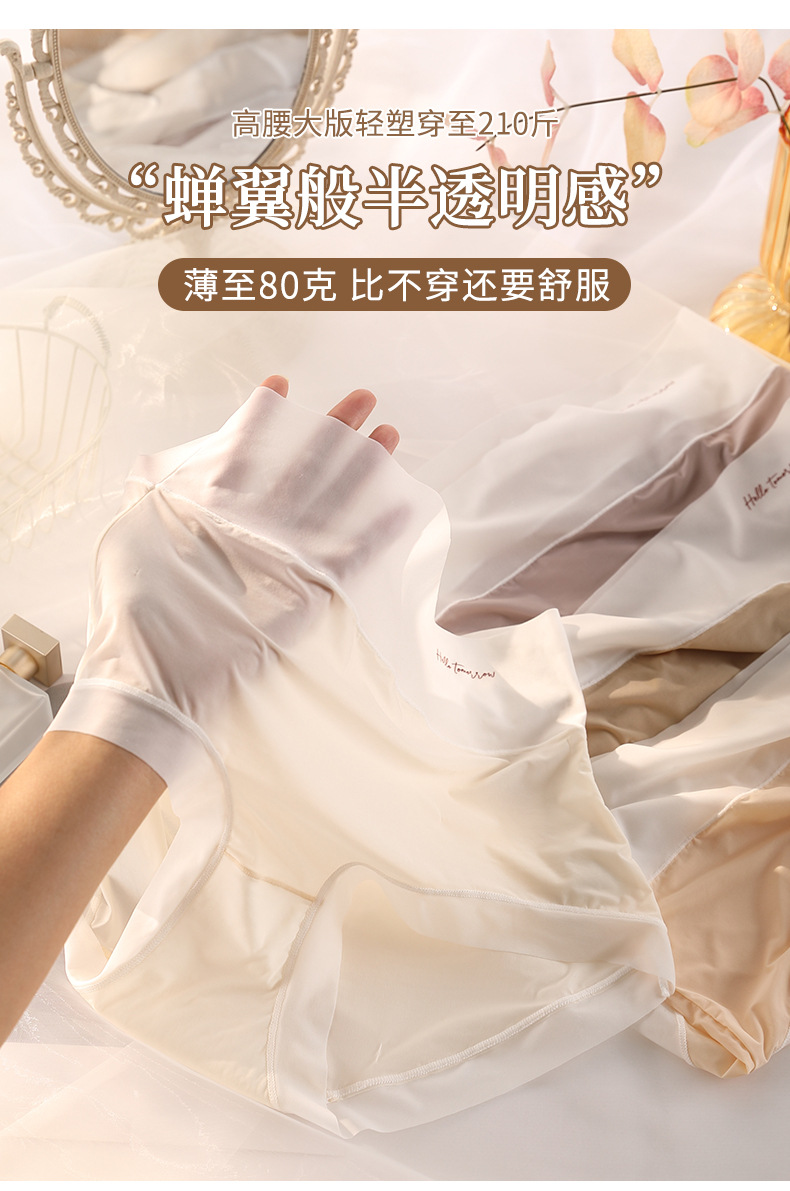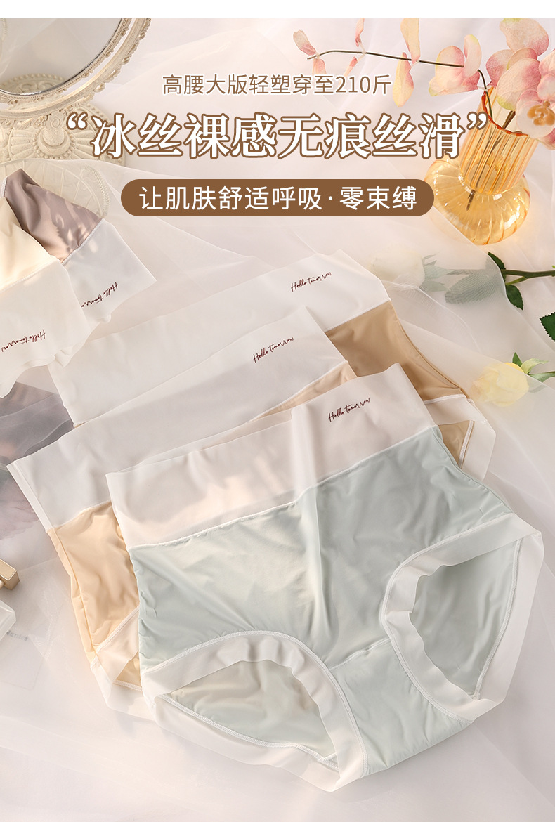 超薄下着夏の新型太ったmm高腰氷糸無痕裸感抗菌大サイズ200斤下着女