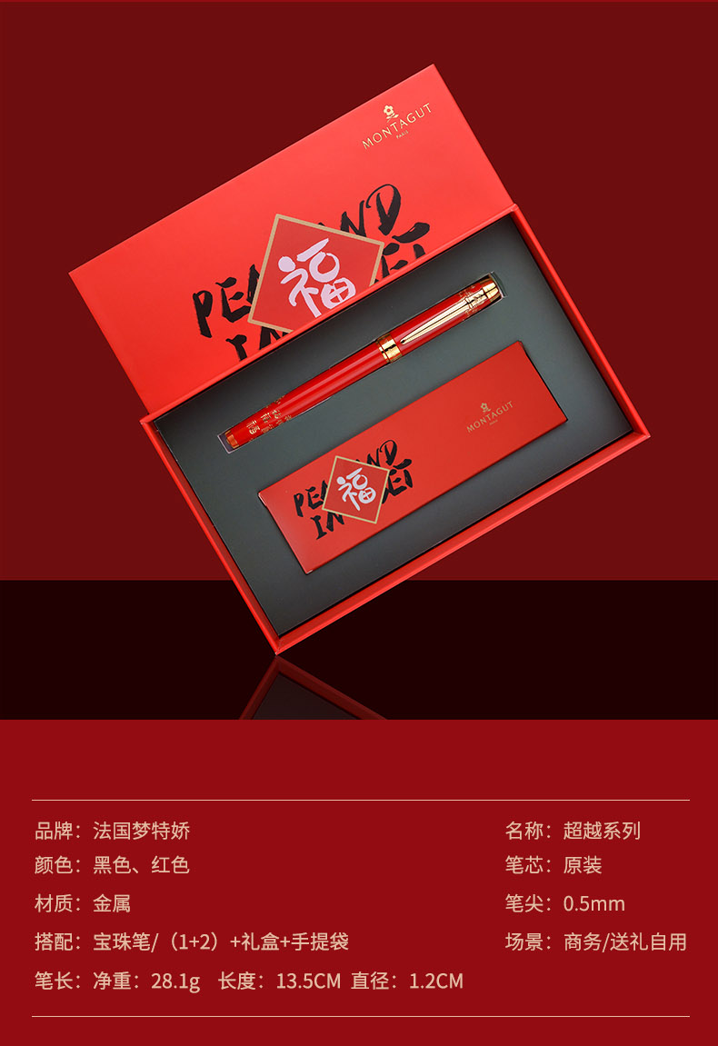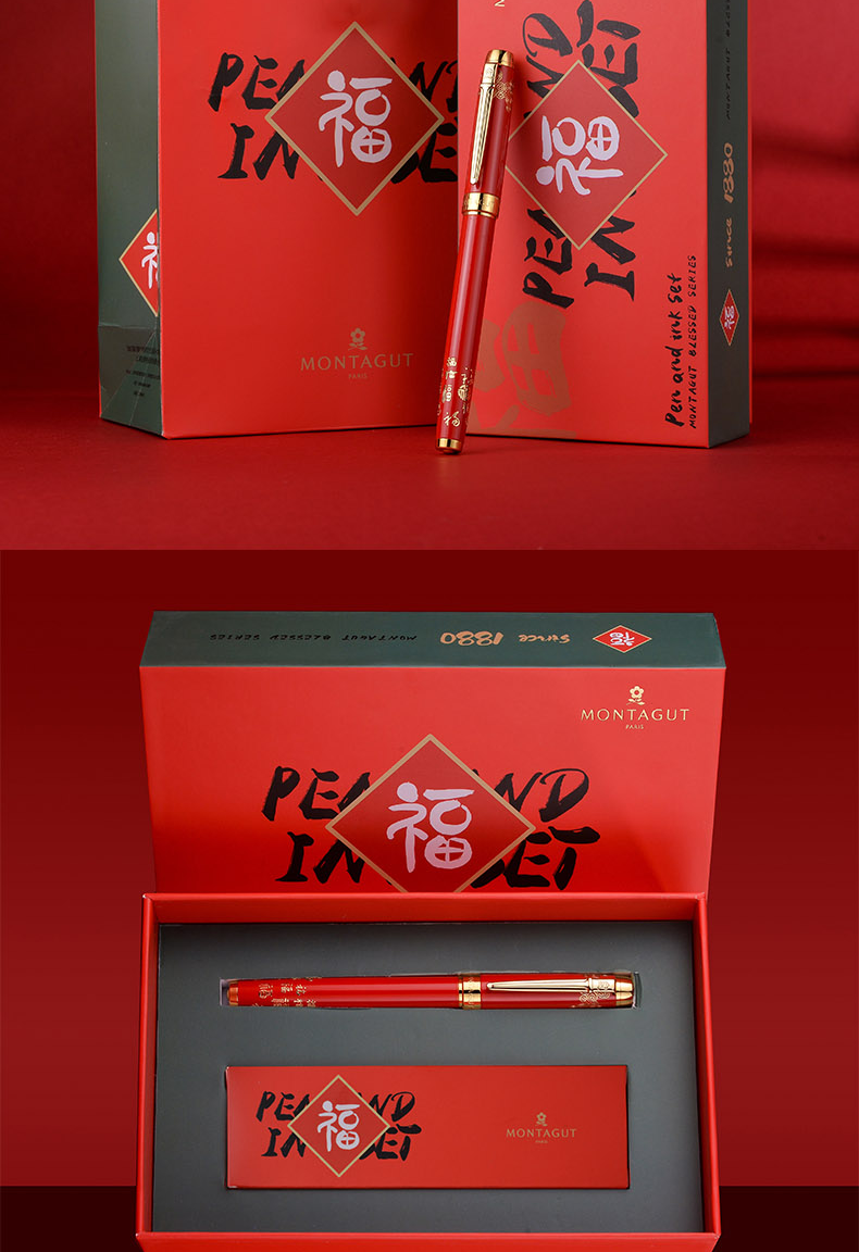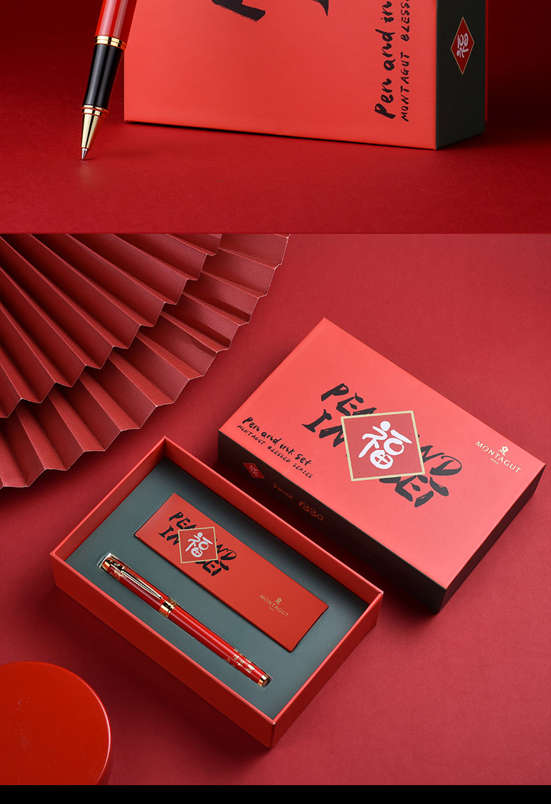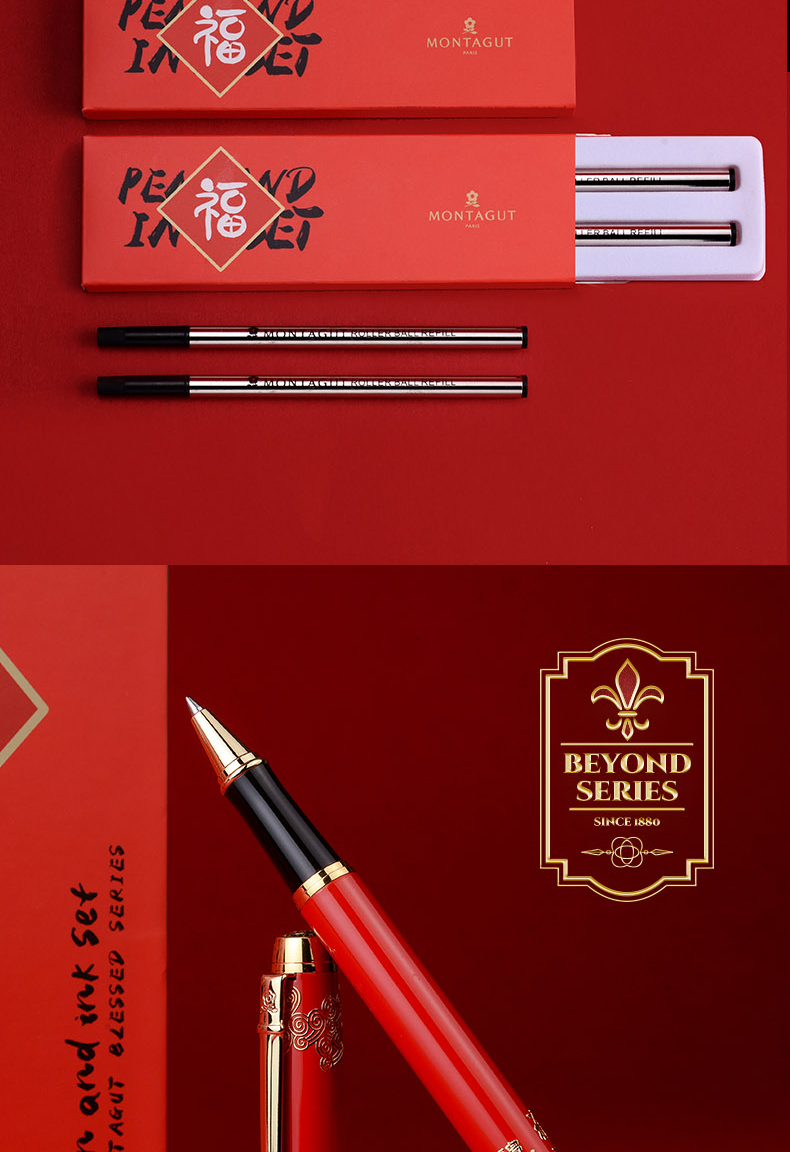 フランスのモンタギュール社の「福」字入り中国風サインペン、ビジネス用メタルボールペン、男女兼用ギフトペン